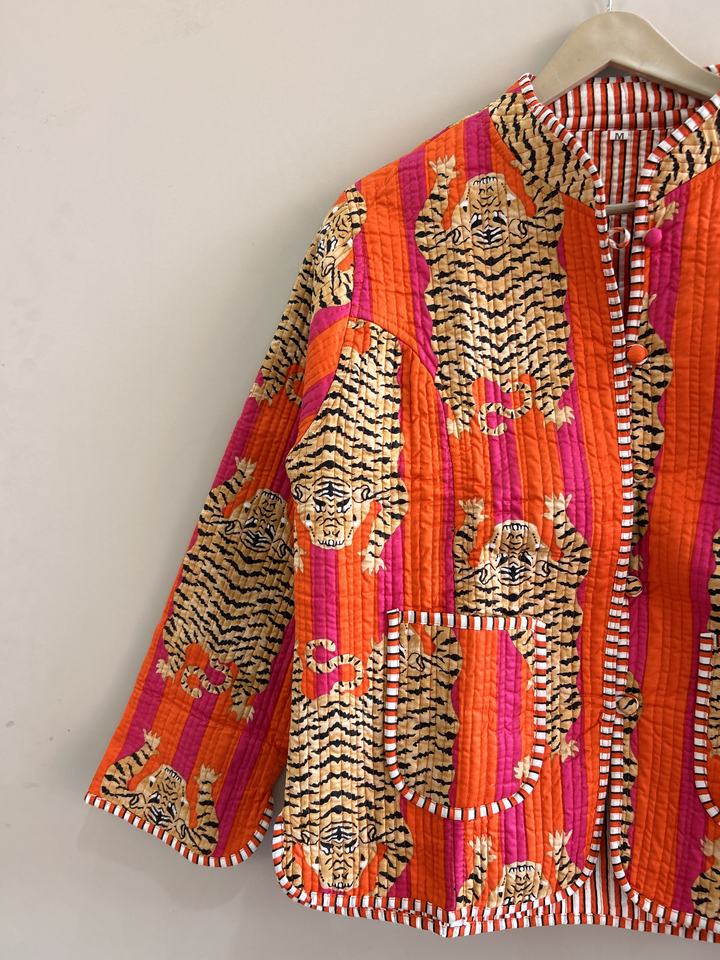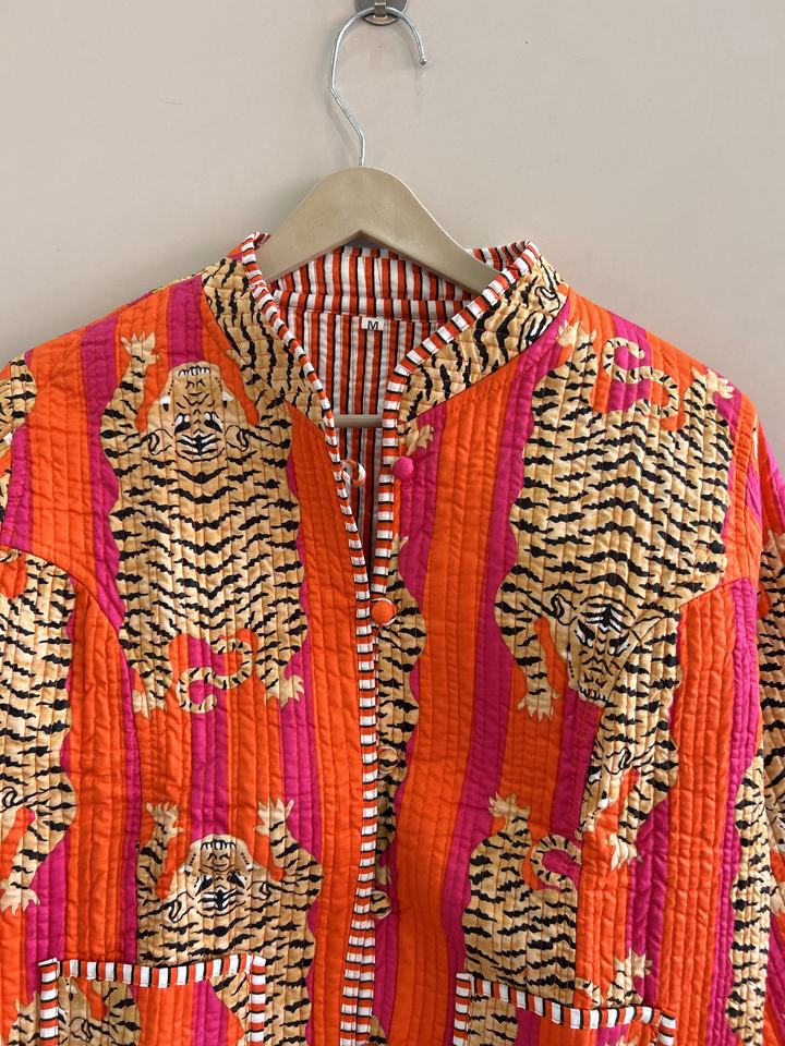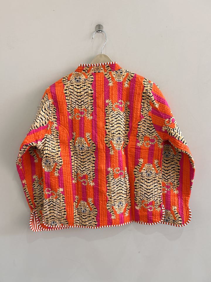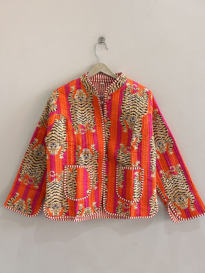 เสื้อแจ็คเก็ตผ้าฝ้ายลายสัตว์สไตล์โบฮีเมียนแบบดั้งเดิมของอินเดีย แจ็คเก็ตสั้นแบบเย็บติดกัน