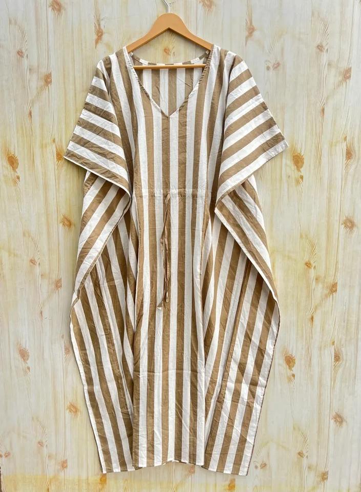 ชุดคลุมยาวใส่สบายสำหรับเจ้าสาวแบบ Caftan ลายขวางผ้าฝ้ายสไตล์วินเทจสำหรับเป็นของขวัญสำหรับเพื่อนเจ้าสาว