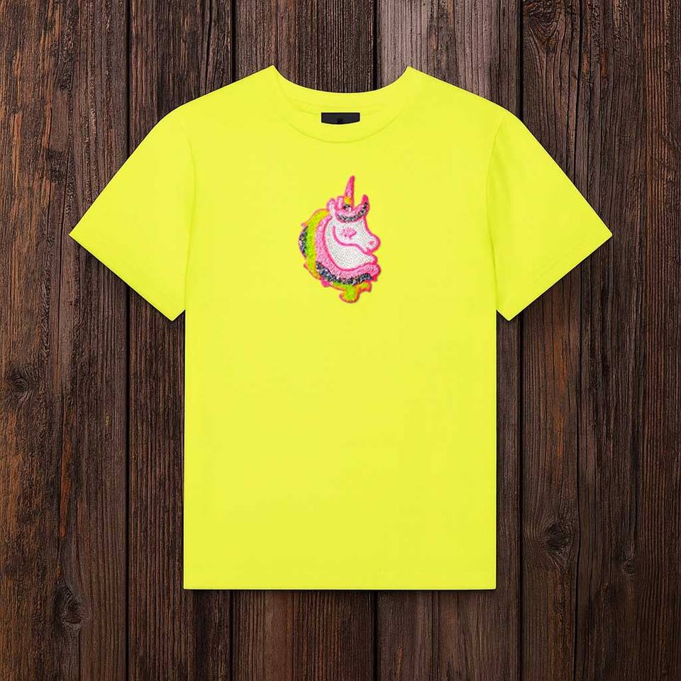 เสื้อยืดผ้าฝ้ายพร้อมแผ่นปะยูนิคอร์นขี้เล่น