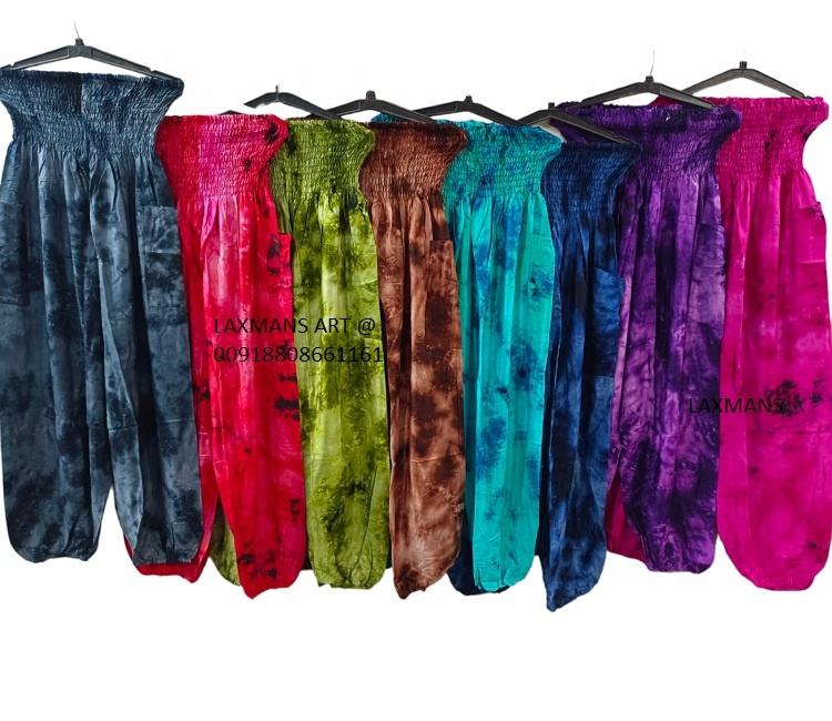 ชุดนอนผ้าฝ้ายมัดย้อมสำหรับผู้ชายชุดนอนผ้าฝ้ายมัดย้อมกางเกงสไตล์โบฮีเมียนกางเกงทรงฮาเร็มชุดนอนทรงหลวมชุดนอนสไตล์โบฮีเมียน