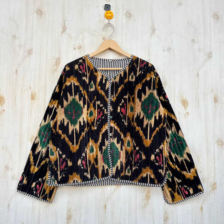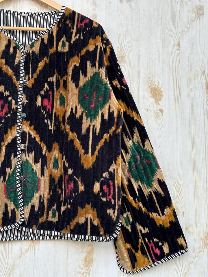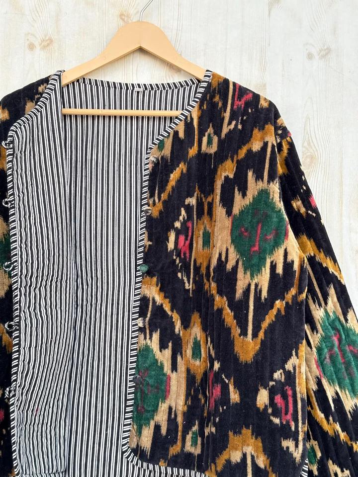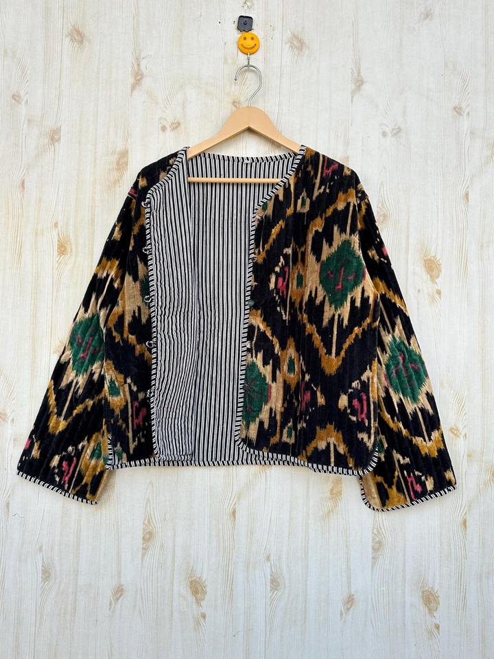 เสื้อแจ็คเก็ตผ้ากำมะหยี่ลายทาง ผลิตจากวัสดุเป็นมิตรต่อสิ่งแวดล้อม คอลเลคชั่นใหม่ ทรงปกติ สำหรับฤดูใบไม้ร่วง ฤดูหนาว ฤดูใบไม้ผลิ ผลิตด้วยมือในอินเดีย คุณภาพพรีเมียม แบบยูนิเซ็กส์ ใส่ได้สองด้าน