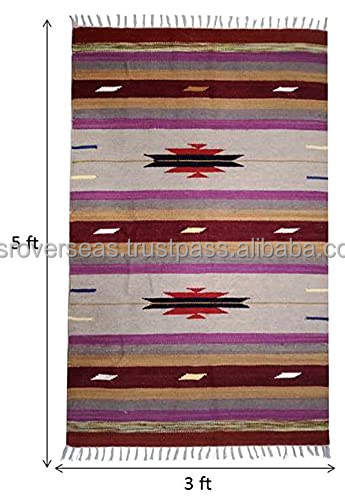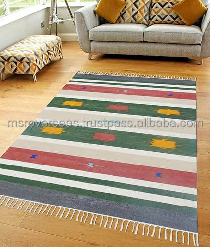 พรมผ้าฝ้ายกำมะหยี่ผ้าขี้ริ้วทำมือลายทางทำด้วยมือขายส่งจากอินเดีย