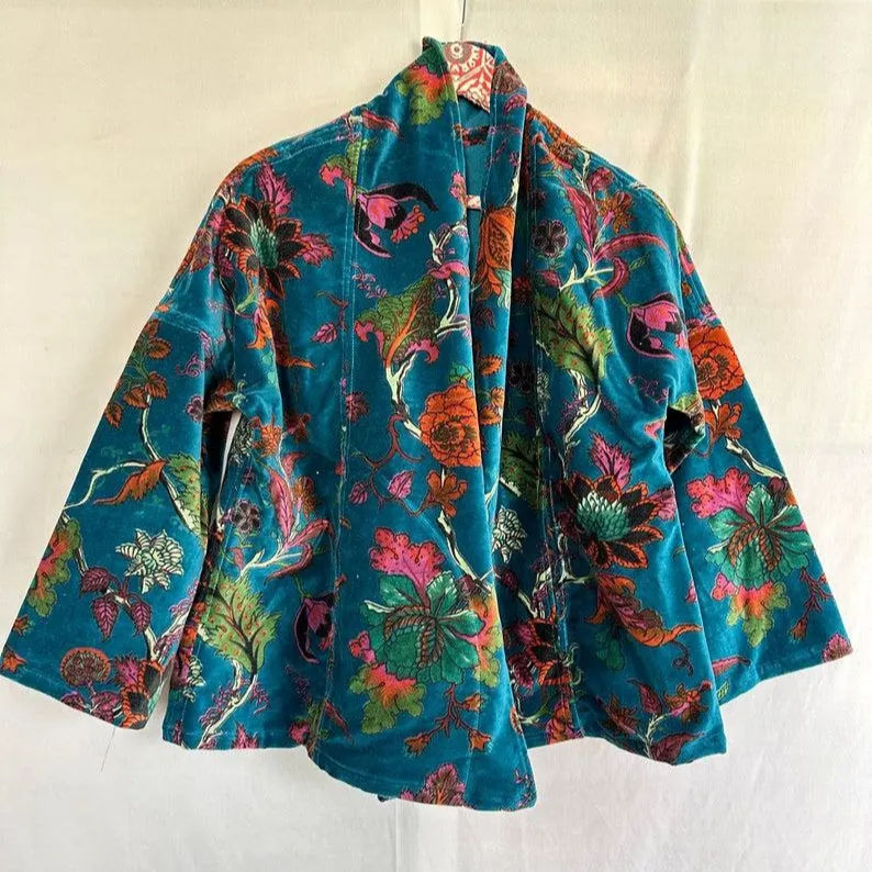 Velvet Block Print Short Kimono
