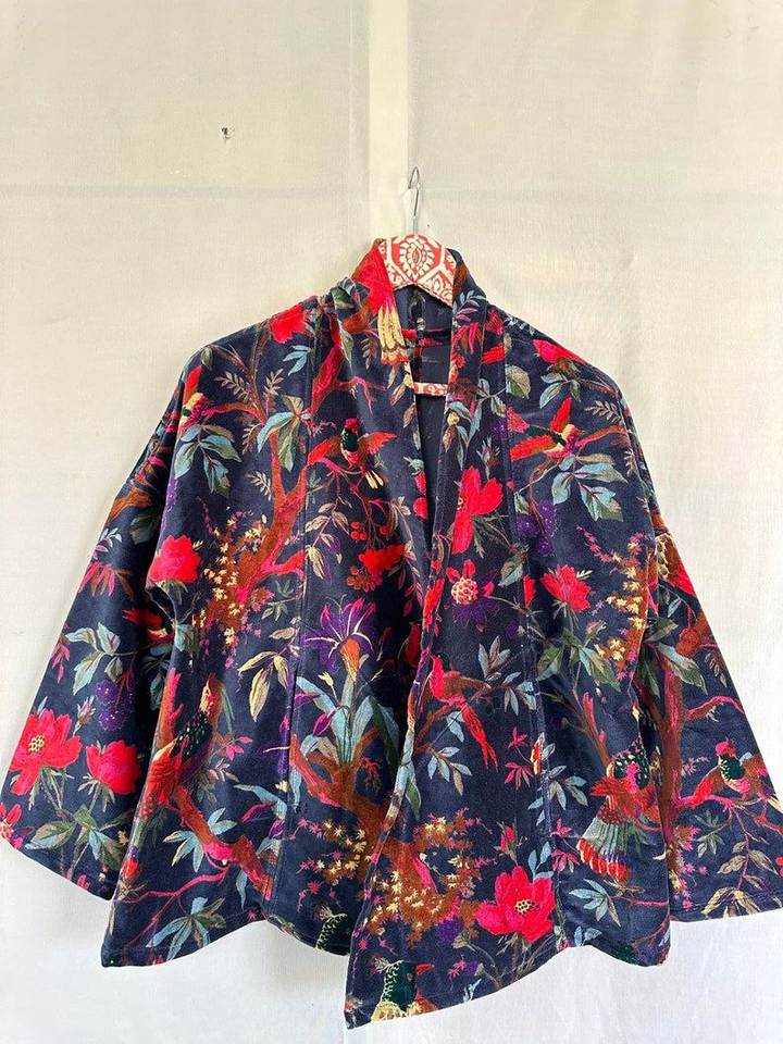 Product name:Velvet Block Print Short Kimono
