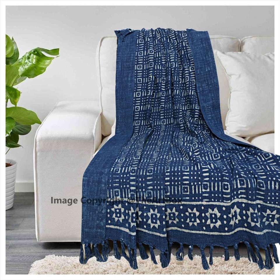 ผ้าห่มผ้าฝ้ายพิมพ์ลายบล็อกวินเทจผ้าห่มโยนสีครามผ้าห่มทำด้วยมือ OEM ODM