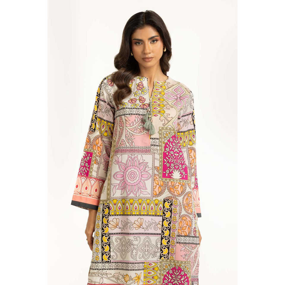 ชุดเซ็ตสไตล์โบฮีเมียนผ้าคอตตอนวิสโคส รุ่น IPST-55247 ผ้าเครปพิมพ์ลาย แขนสามส่วน สำหรับฤดูใบไม้ผลิ/ฤดูร้อน