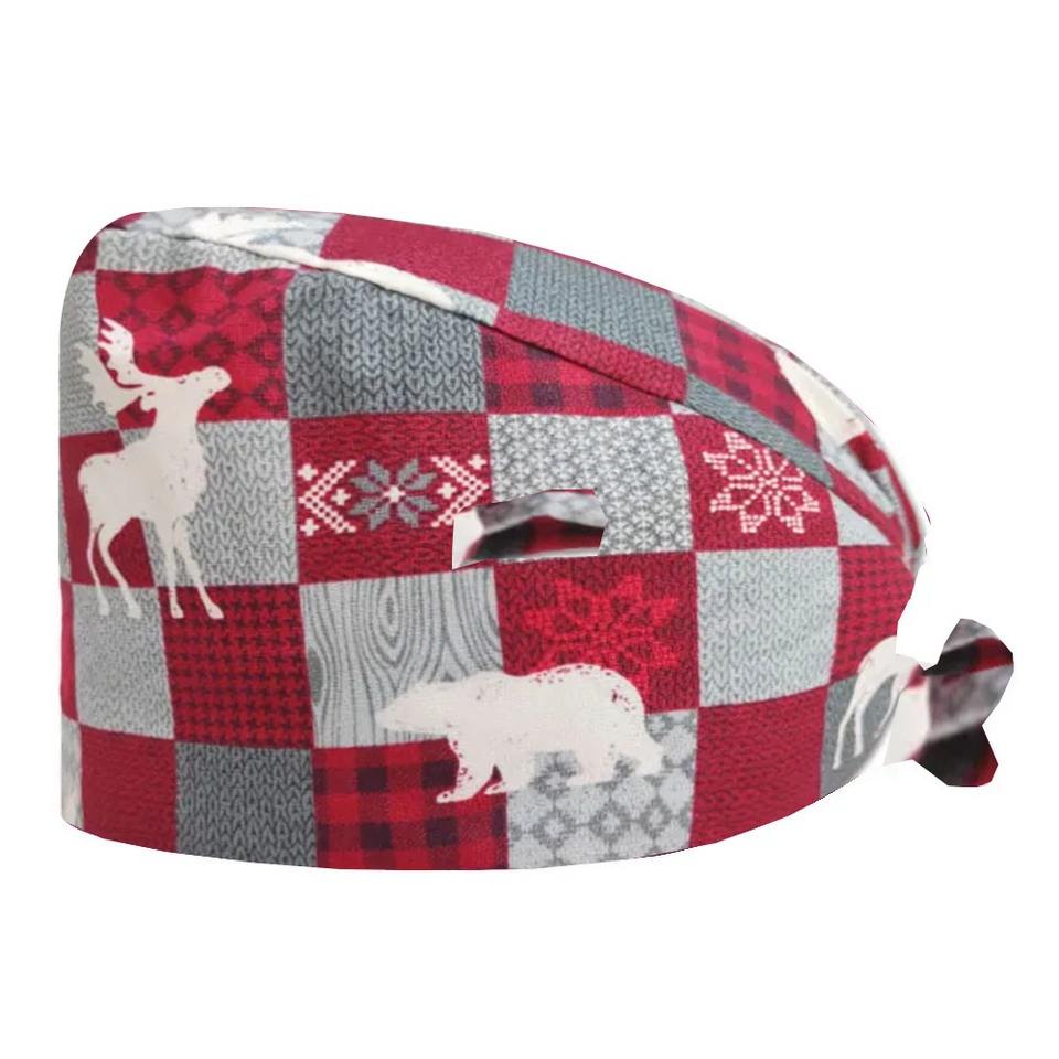 หมวกพยาบาลผ้าฝ้ายสีขาว หมวกผ่าตัดแบบเรียบ หมวกพยาบาลแบบเรียบสำหรับคริสต์มาสและปีใหม่ หมวกพยาบาลแบบเรียบสำหรับทุกเพศ