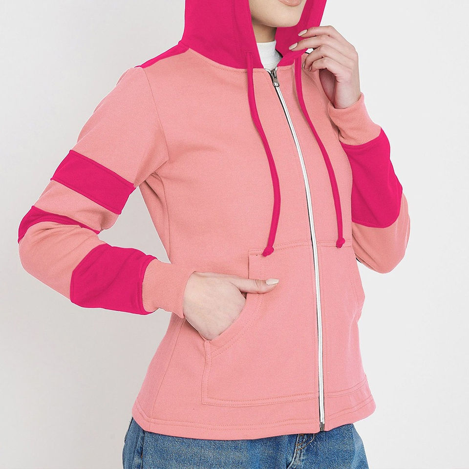 เสื้อฮู้ดผู้หญิงผ้าฝ้ายแบบมีซิป สไตล์สตรีทแวร์ ฮู้ดดี้ทันสมัยพร้อมซิปคู่ระบายอากาศ เสื้อฮู้ดผู้หญิงระบายอากาศได้ดี