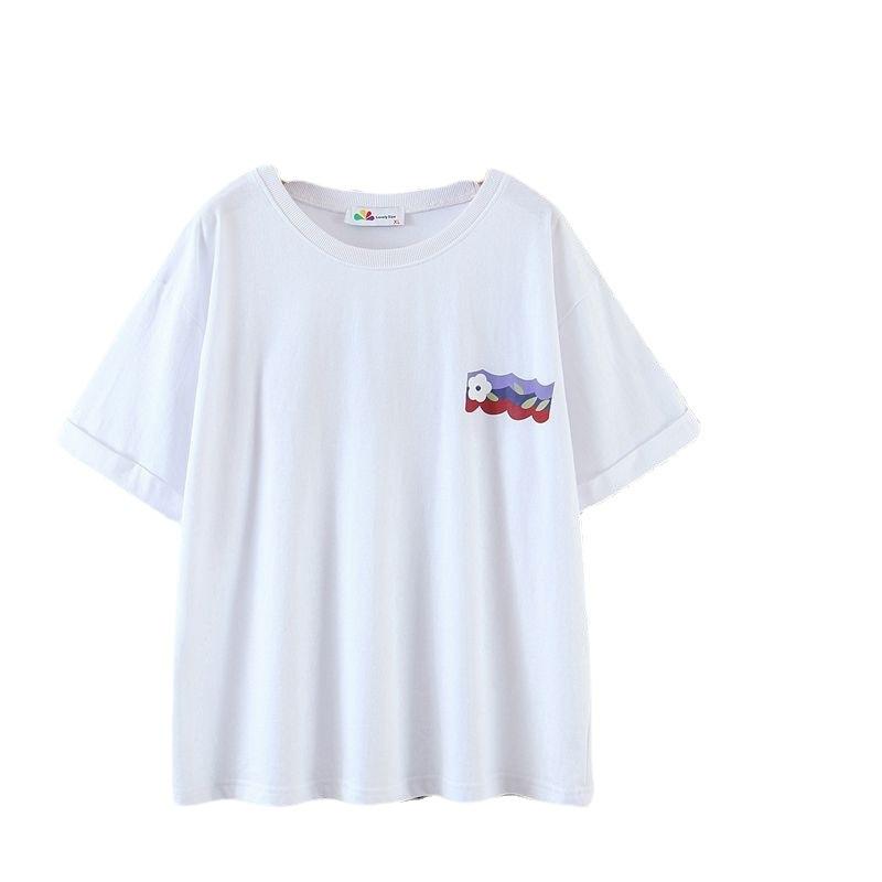 เสื้อยืดแขนสั้นผู้หญิงผ้าฝ้ายพิมพ์ลายดอกไม้สีขาว N8006