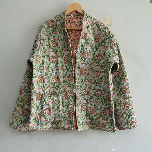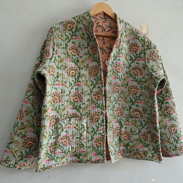 แจ็กเก็ตบุผ้าคอตตอนพิมพ์ลายสไตล์โบฮีเมียนทำมือสำหรับผู้หญิงเสื้อโค้ทผู้หญิงมีกระดุมสำหรับใส่ได้ทุกเพศของขวัญ