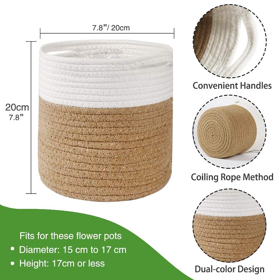 กระถางต้นไม้ผ้าฝ้ายทอพร้อมซับใน กระเช้าปลูกต้นไม้ในร่มสำหรับตกแต่งบ้าน กระถางดอกไม้