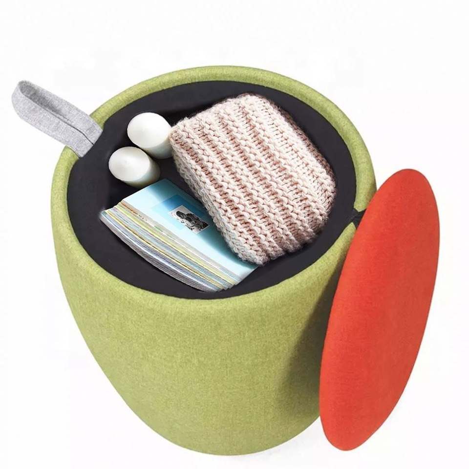 ผ้าฝ้ายและผ้าลินินสตูลห้องนอนโฮมออฟฟิศรอบม้านั่งเก็บพร้อมฝาปิดแบบเคลื่อนย้ายได้ Taburete de almacenamiento