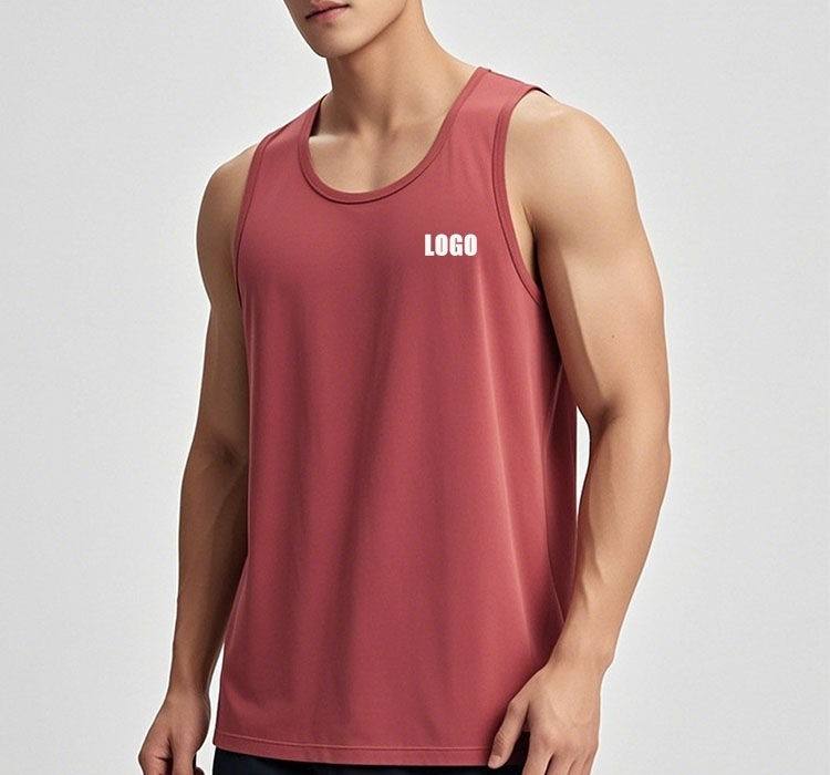 เสื้อกล้ามผู้ชายคอกลมผ้าฝ้ายสีทึบออกแบบได้ตามต้องการเสื้อออกกำลังกายรัดรูปพร้อมโลโก้