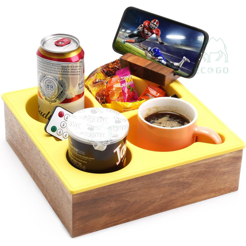 ที่วางถ้วยบนโซฟาตัวจัดระเบียบบนชายหาดทำจากไม้อะคาเซียซิลิโคนนิ่มใช้ง่าย