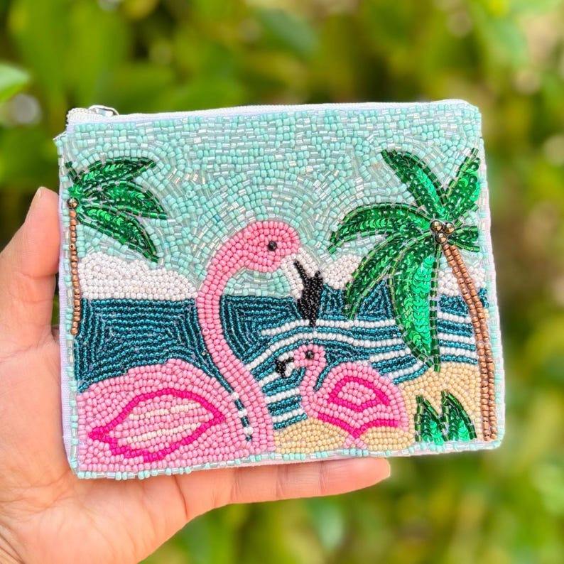 กระเป๋าใส่เหรียญลูกปัดแบบมีซิป ประดับลูกปัดทั้งสองด้าน