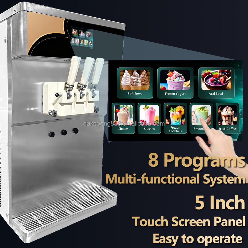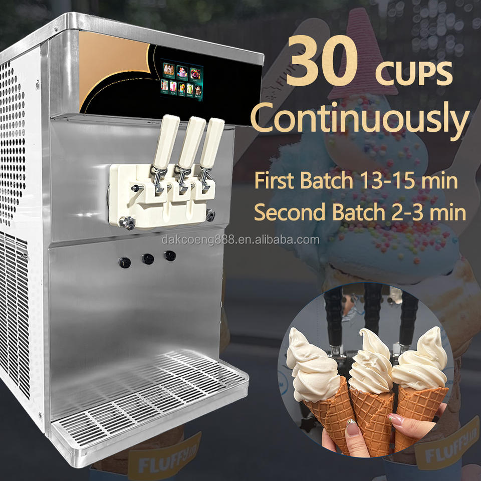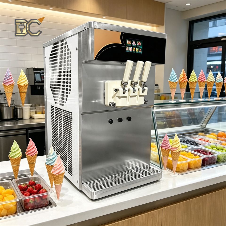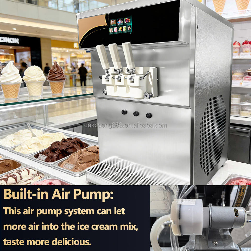เครื่องทำไอศกรีมนุ่มแบบตั้งโต๊ะ 2 คอมเพรสเซอร์ แบบตั้งพื้น ประหยัดพื้นที่ เครื่องทำไอศกรีมนุ่ม 3 รสชาติ พร้อมปั๊มลม