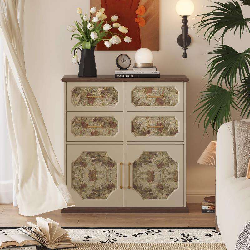 ตู้ลิ้นชักไม้จริงลายเรโทรสไตล์คันทรี 5 ชั้น สำหรับเก็บของ ใช้ในห้องนั่งเล่น ห้องนอน ภายในบ้าน