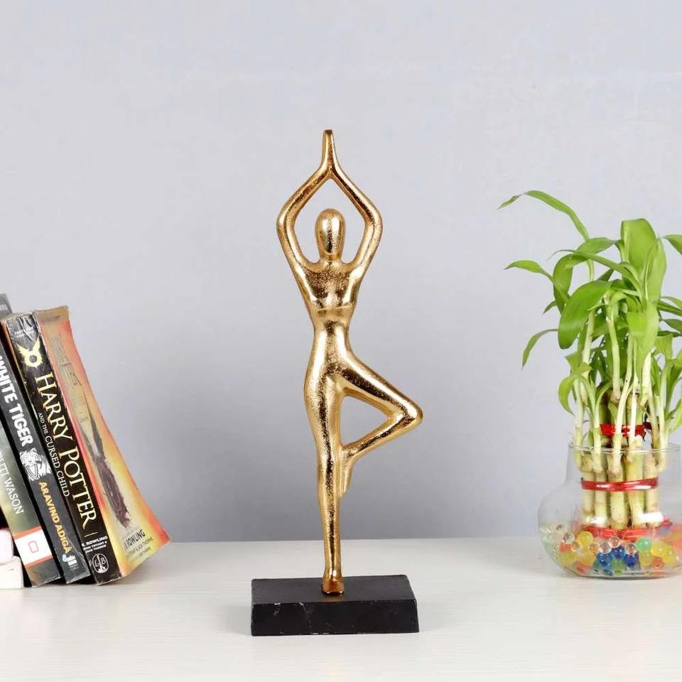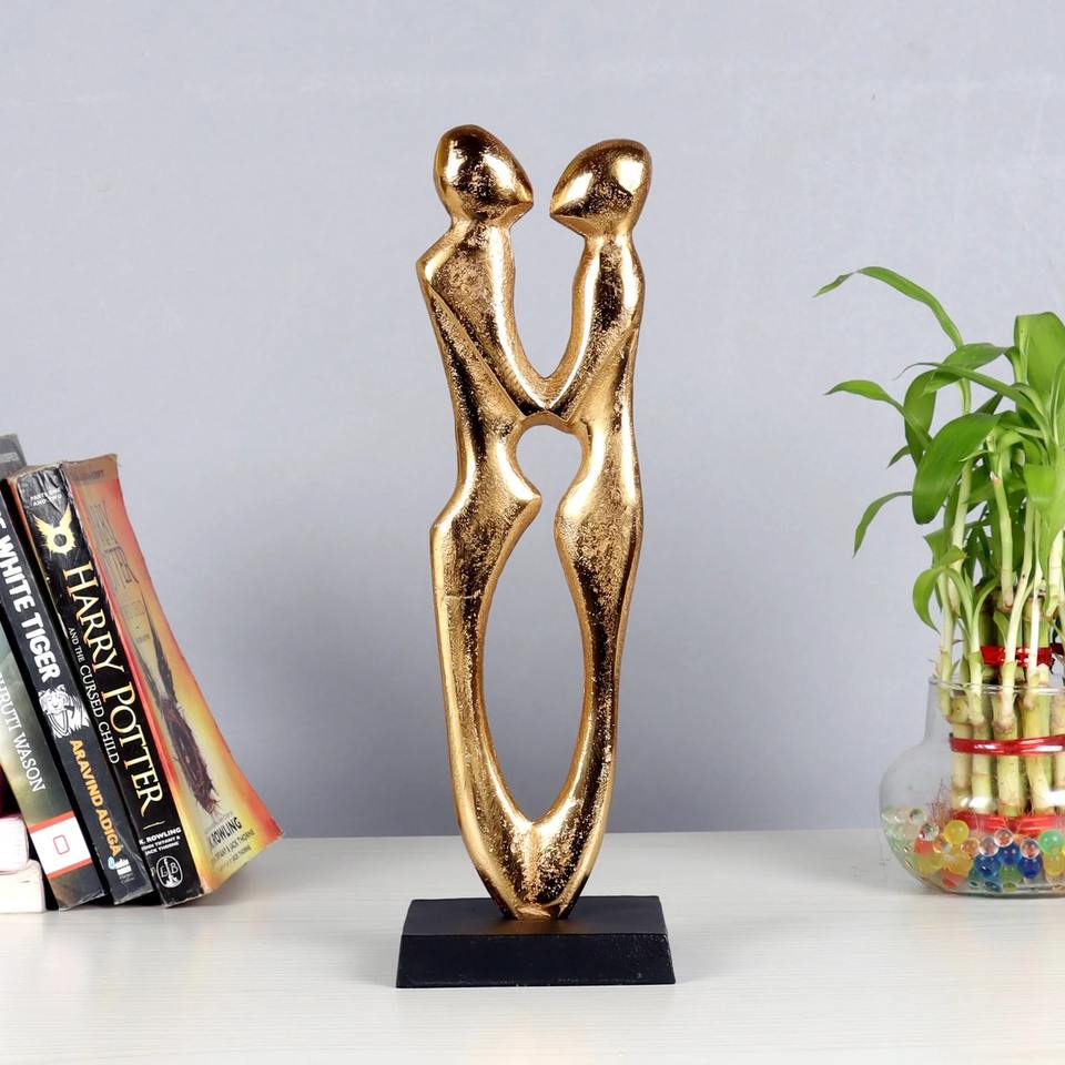 รูปปั้นคู่รักบนโต๊ะ ทำจากโลหะเคลือบทอง งานศิลปะตกแต่งบ้าน สไตล์โมเดิร์น เหมาะสำหรับตกแต่งบ้าน สำนักงาน ห้องนั่งเล่น นำเข้าจากอินเดีย