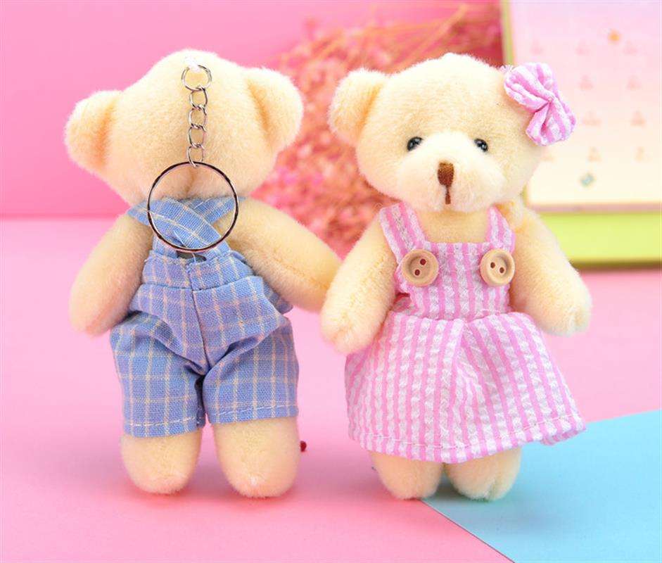 พวงกุญแจตุ๊กตาหมีคู่สำหรับเล่นของขวัญบ้านตุ๊กตาพวงกุญแจตกแต่งงานแต่งงานตุ๊กตาสัตว์ยัดไส้