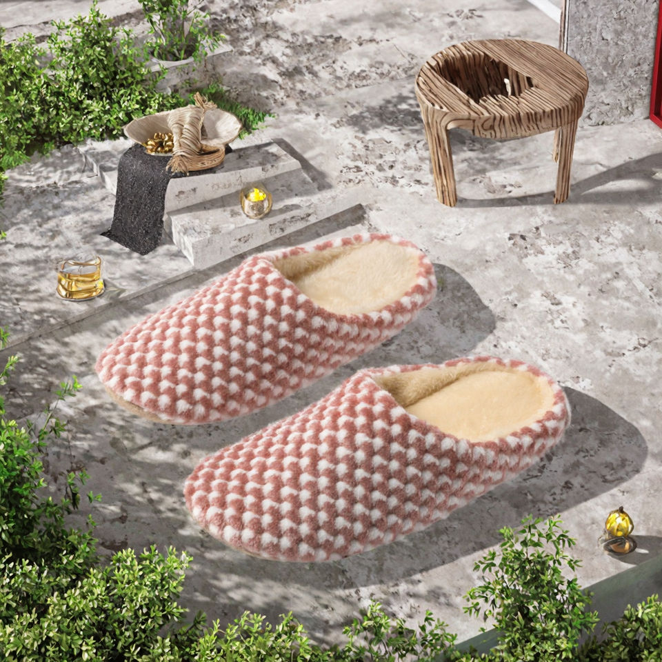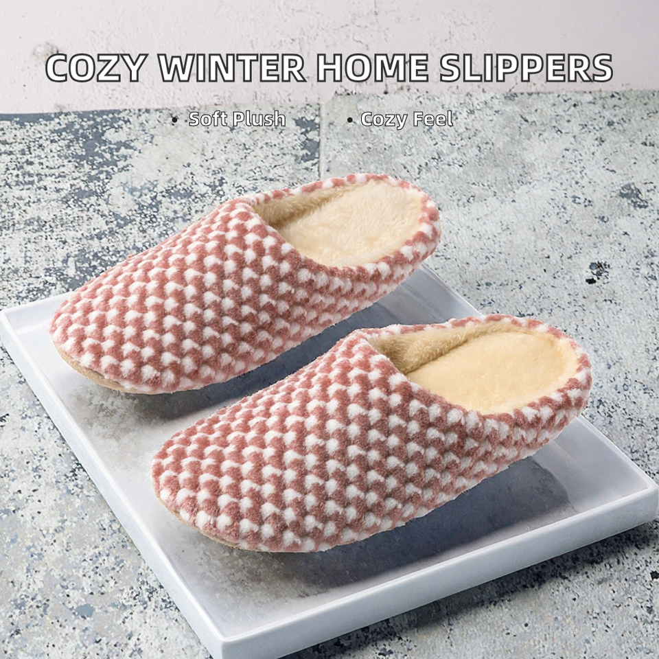 รองเท้าแตะคู่รักแบบสวมใส่สบายในบ้าน ผลิตจากไมโครไฟเบอร์เนื้อนุ่ม พื้นรองเท้าด้านนอกทำจาก EVA เหมาะสำหรับฤดูหนาว ดีไซน์ปิดนิ้วเท้า