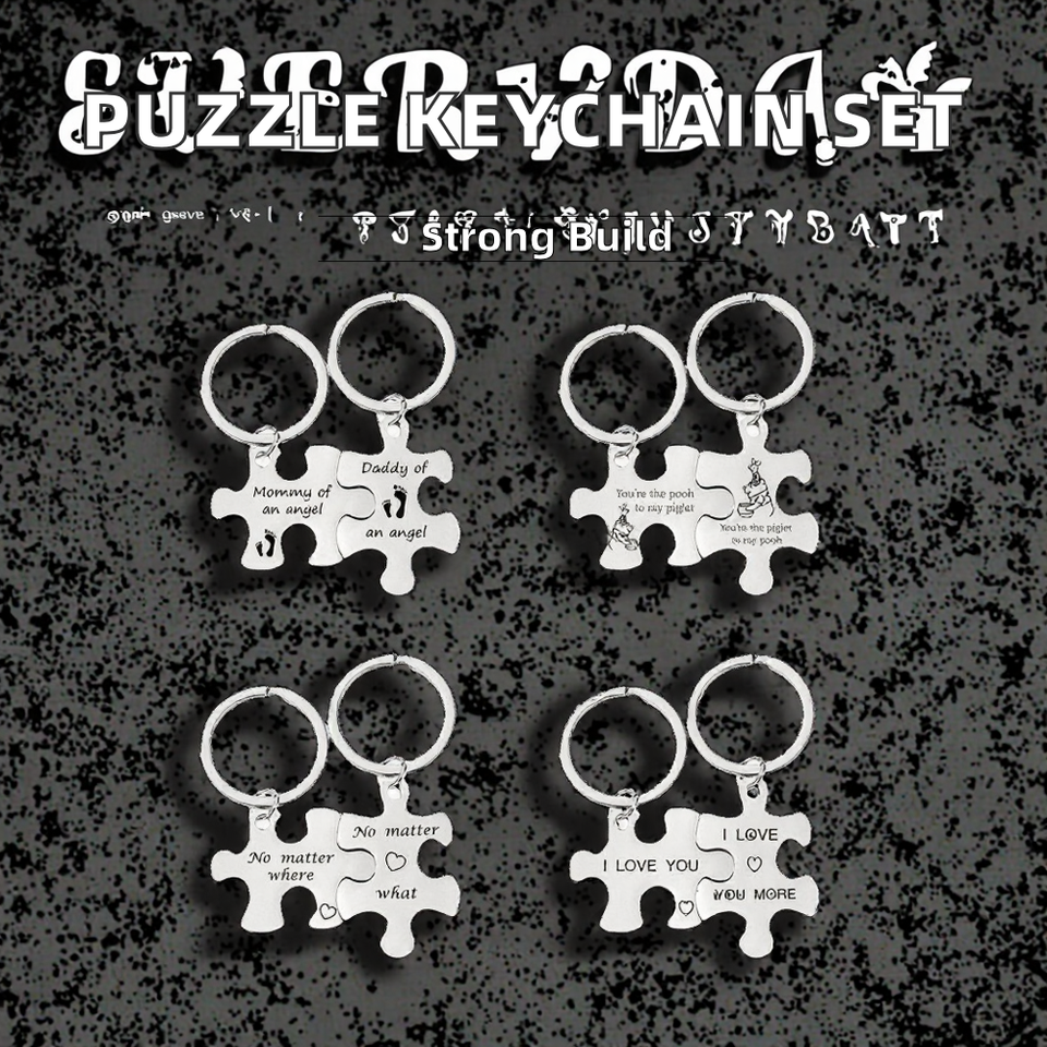 พวงกุญแจสแตนเลสแฟชั่นคู่รัก รูปแบบจิ๊กซอว์เข้าชุด สำหรับคนรัก คู่รักที่เข้ากันได้ดี ไอเดียของขวัญวันวาเลนไทน์