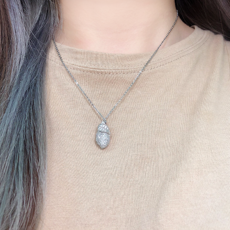 สร้อยคอคู่รักลายผี-ประดับเพชรซิร์คอนเงินแท้สำหรับงานแต่งงานและงานหมั้น