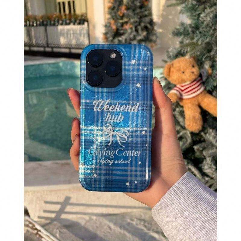 เคสโทรศัพท์ลายดาวสีน้ำเงินลายสก็อตสำหรับ iPhone 15 Pro Max, iPhone 11, 12, 13, 14, 16, XS, X, XR, 7, 8, 16 Plus, SE 2022 แบบนิ่ม