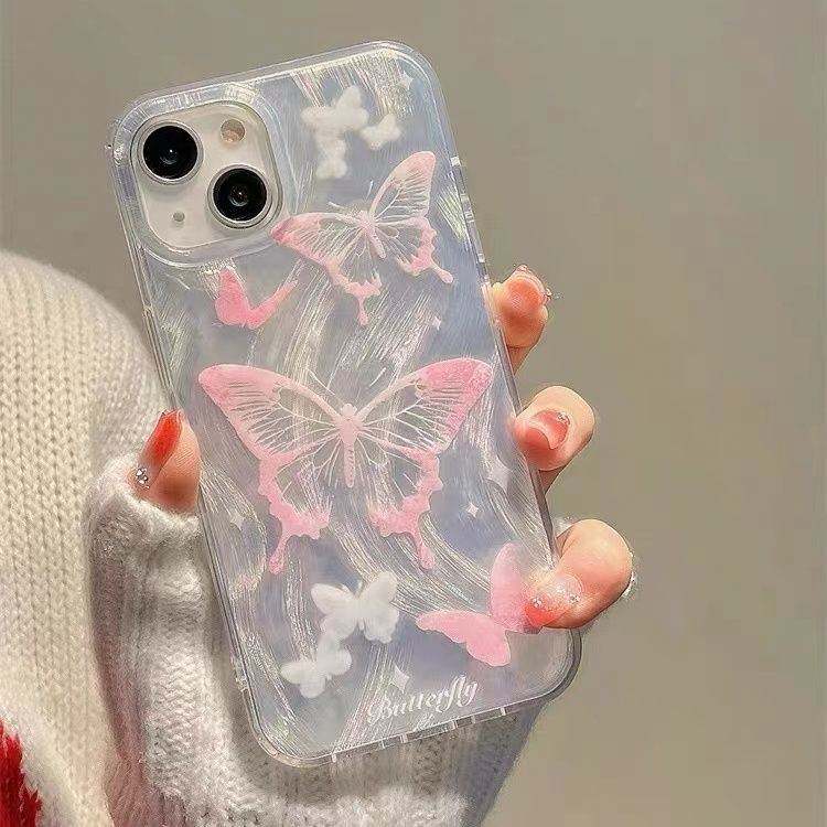เคสโทรศัพท์มือถือลายผีเสื้อสีเงินเลเซอร์สุดหรู สำหรับ iPhone 15 Pro Max, iPhone 11, 14, 12, 13 Pro Max, 16, 17 Plus ป้องกันอย่างดี
