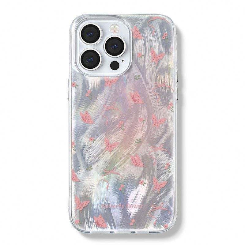 เคสโทรศัพท์ลายผีเสื้อสีชมพูสวยงามหรูหราสำหรับ iPhone 16 15 14 13 12 11 Pro Max Plus แบบใสกันกระแทกแข็งแรง