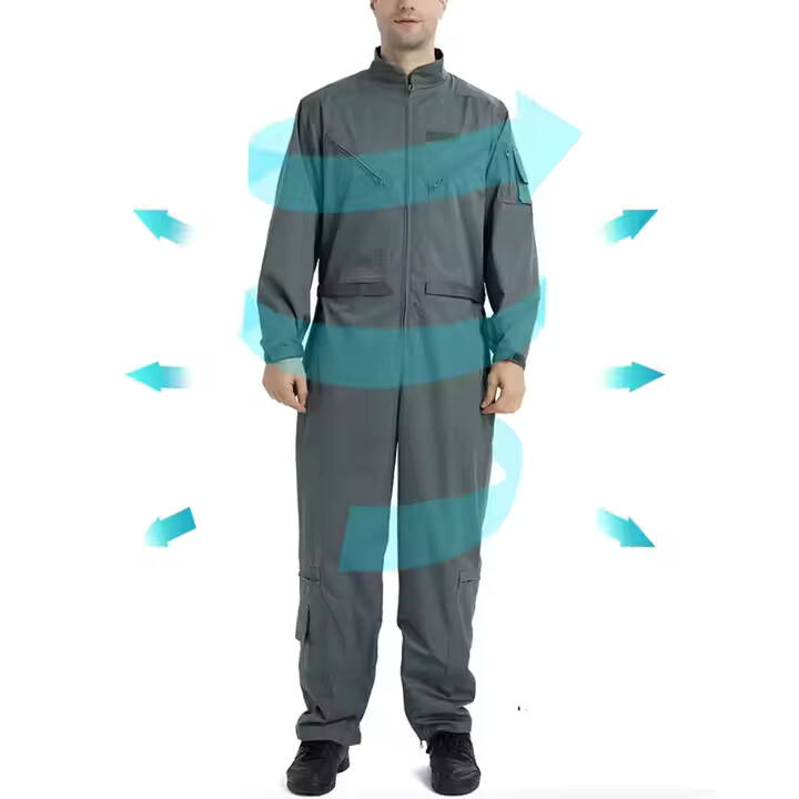 ชุดคลุมทำงานผ้าฝ้ายผสมโพลีเอสเตอร์ ชุดป้องกันสำหรับผู้ชาย คุณภาพสูง รับทำโลโก้ตามแบบ ขนาดชุดคลุมทำงาน