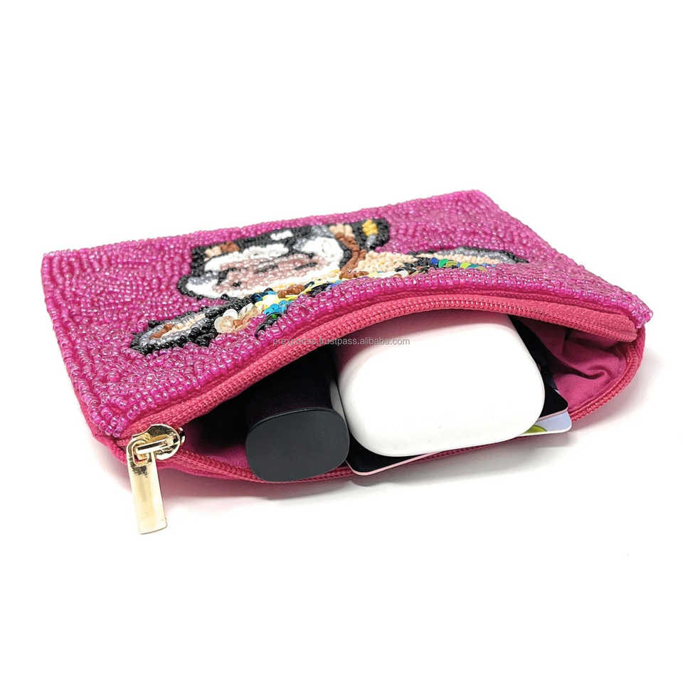 Cow Beaded Handmade Sequin Zipper Floral Crown Bull Clutch Farm Animal Seed Bead Trendy Embroidered Purse Western Party Natural