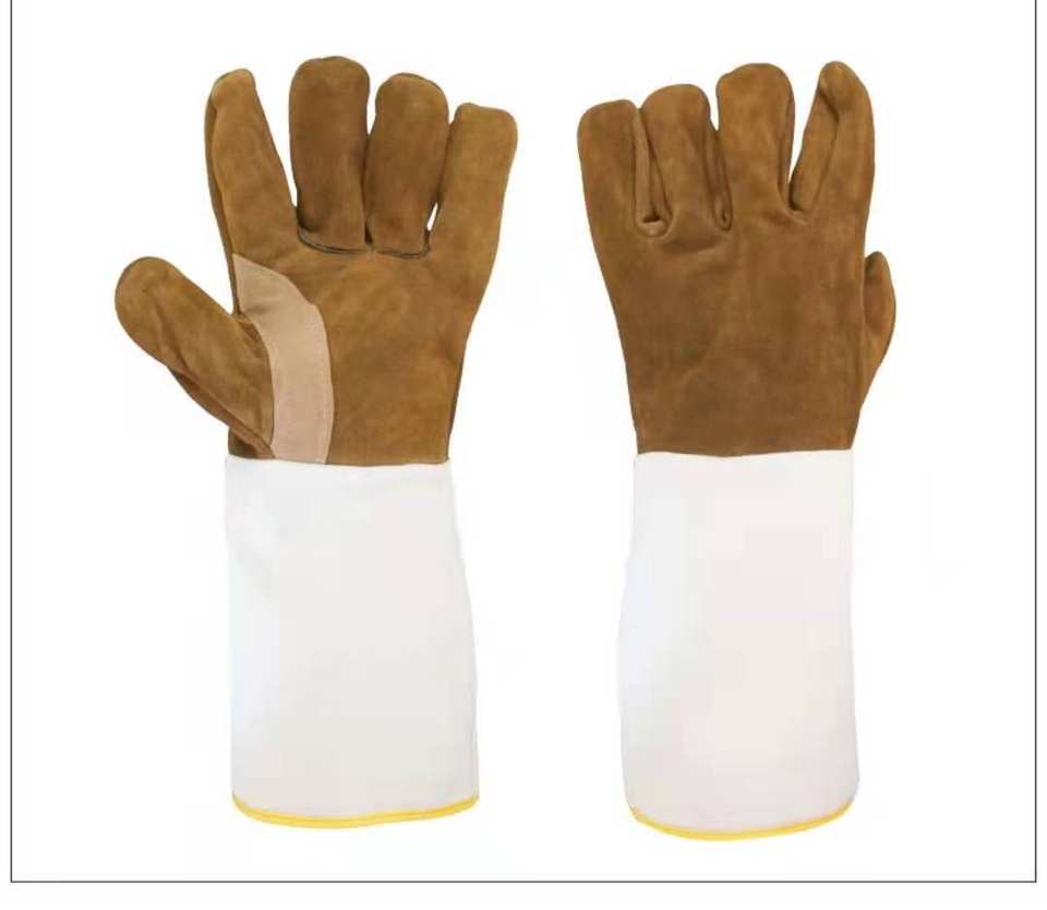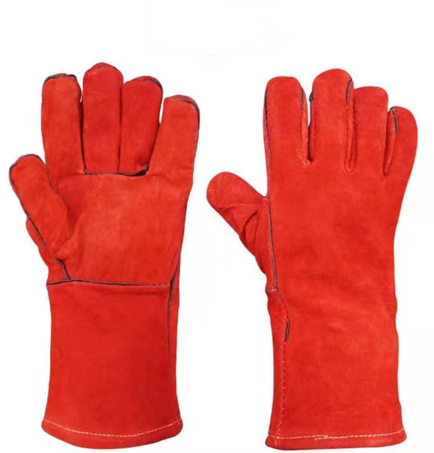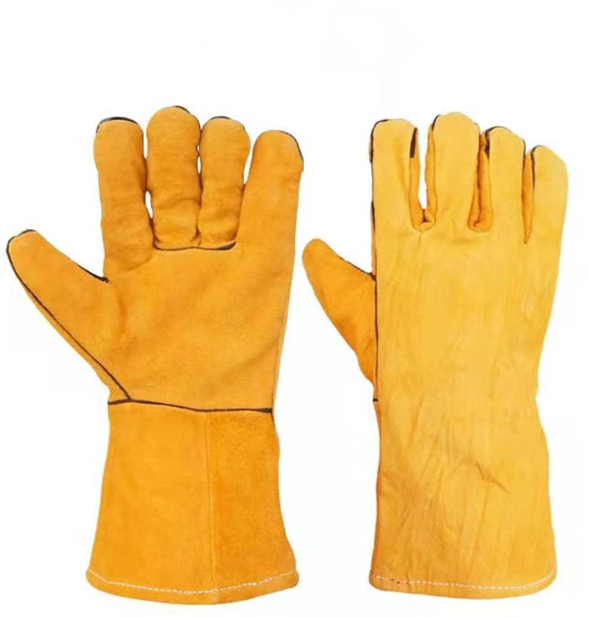 ถุงมือเชื่อมถุงมือหนังวัวแยกชิ้นสำหรับงานเชื่อม