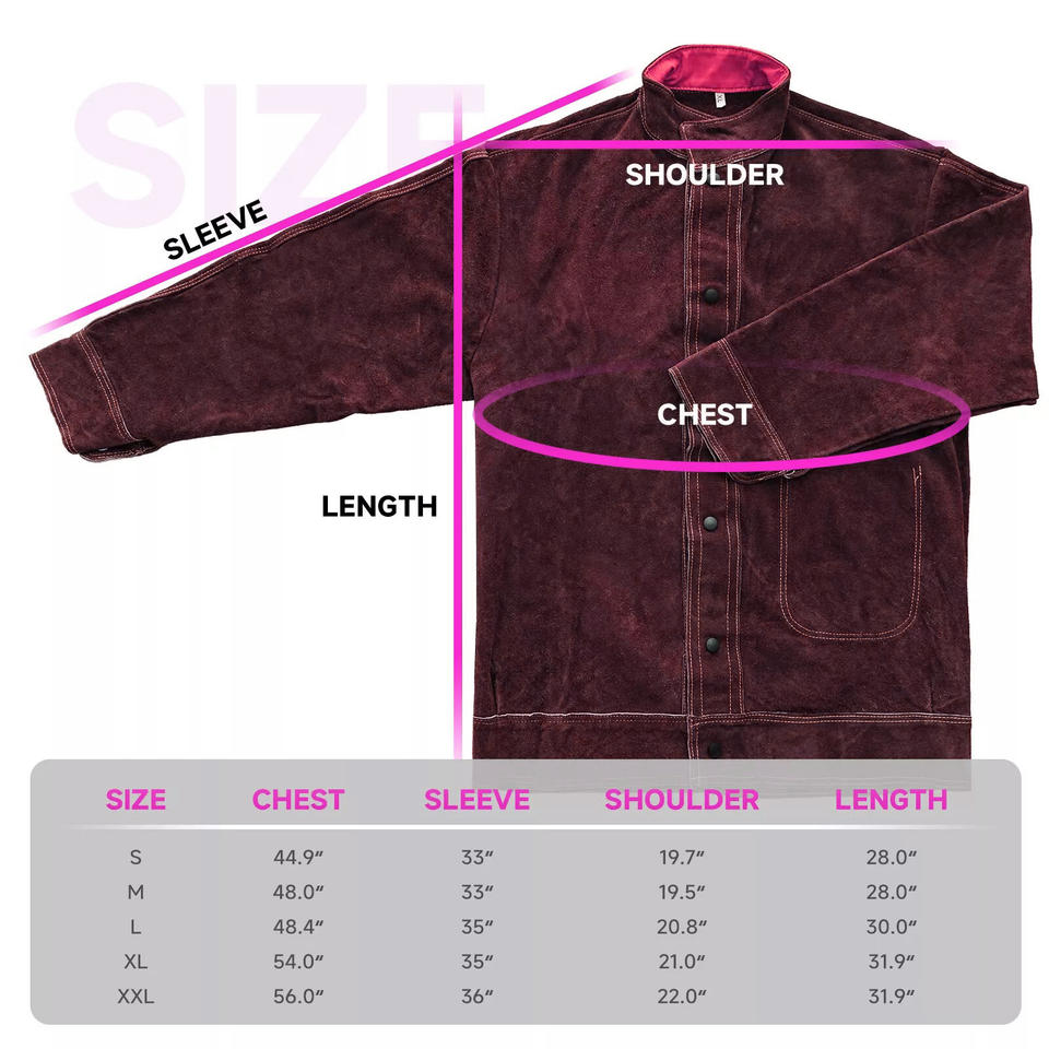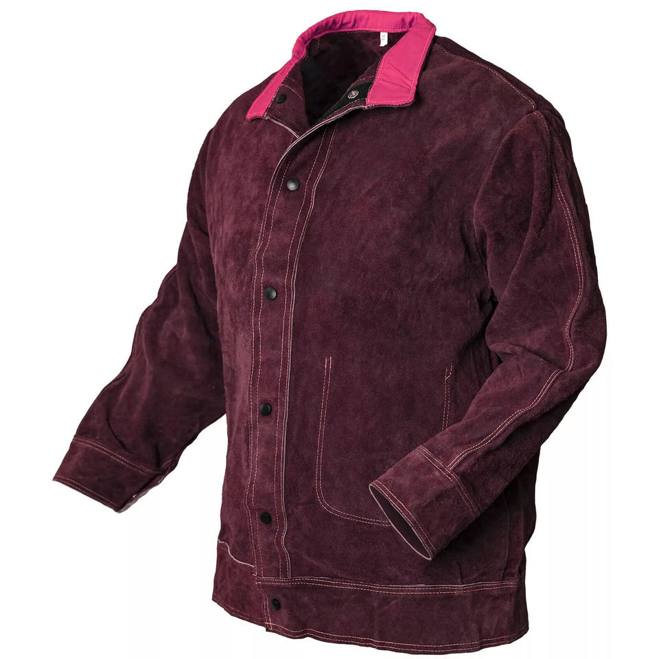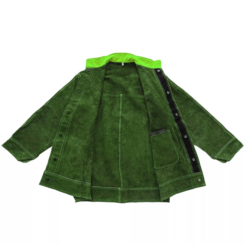 หนังวัวแยกสำหรับงานอุตสาหกรรมพร้อมผ้ากันเปื้อนสำหรับป้องกันเกียร์แจ็คเก็ตงานเชื่อมทนความร้อน