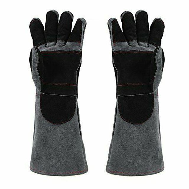 ถุงมือเชื่อมหนังวัวแบบแยกสำหรับใช้ในงานอุตสาหกรรมเคฟลาร์ถุงมือดับเพลิงเย็บเพื่อความปลอดภัย