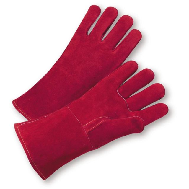 ถุงมือเชื่อมหนังวัวแยกยาว Cowhide หนังแท้ความปลอดภัย