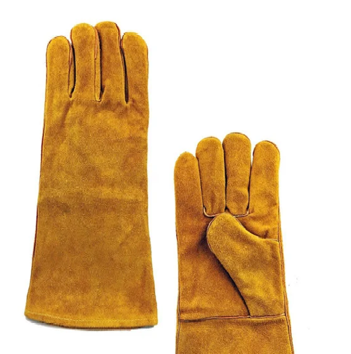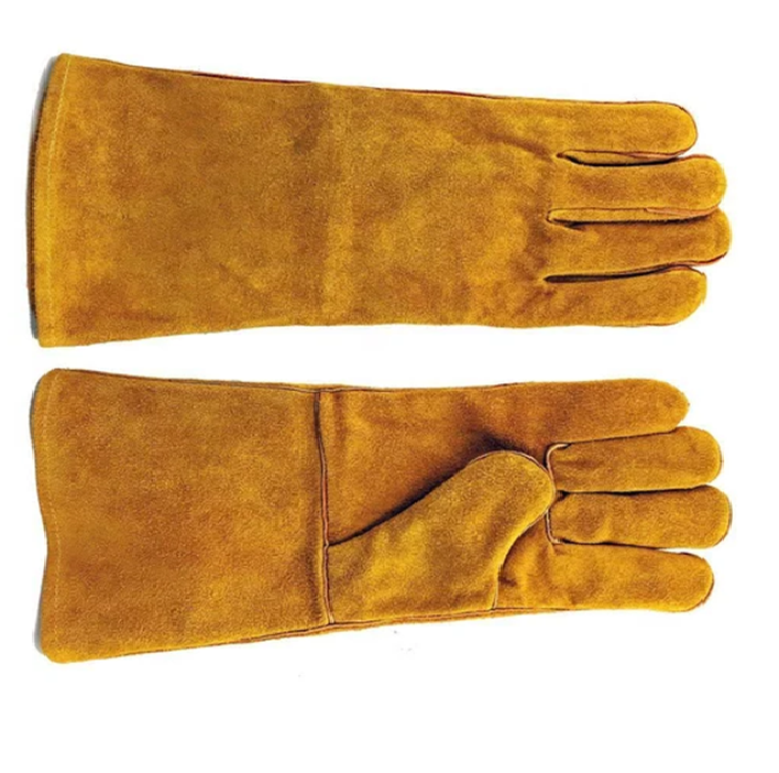 ถุงมือเชื่อมหนังวัวแยกยาวหนังวัวแท้ถุงมือนิรภัยสำหรับงานเชื่อมอุตสาหกรรม