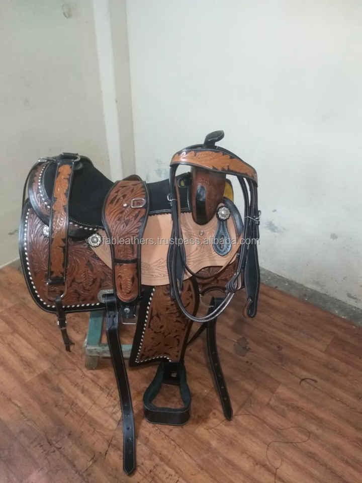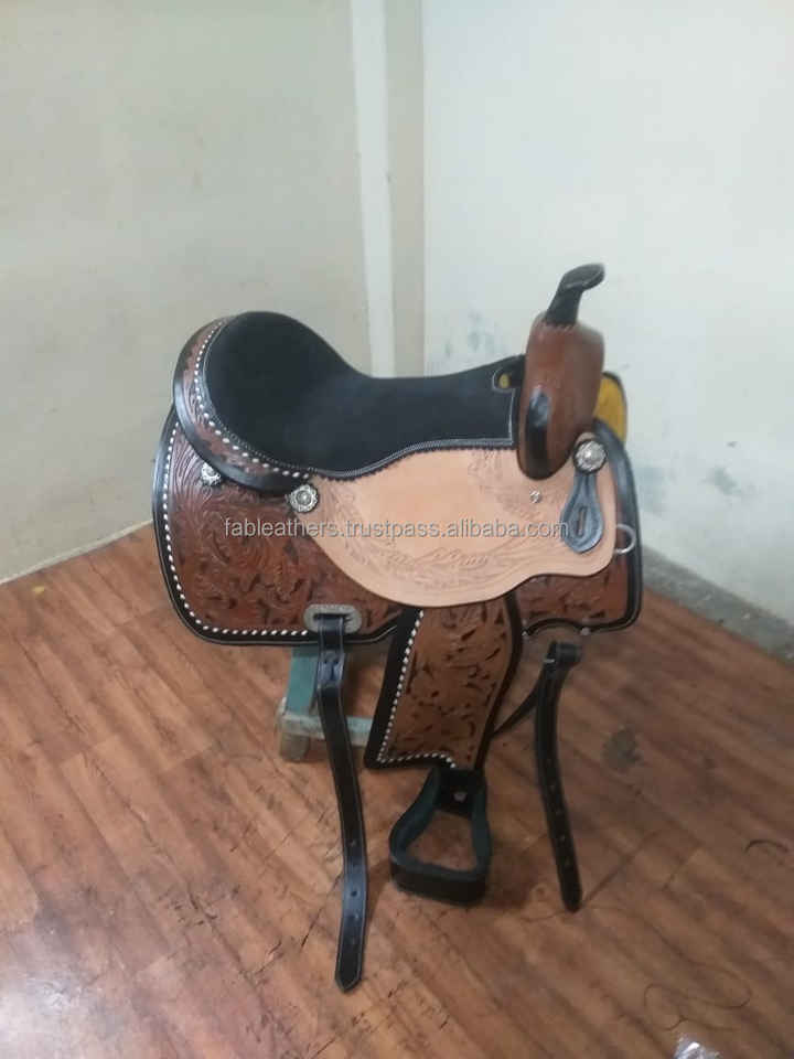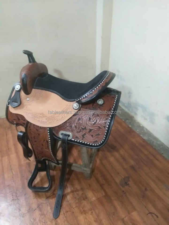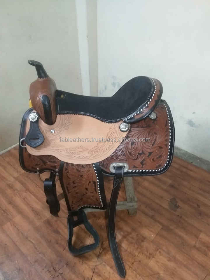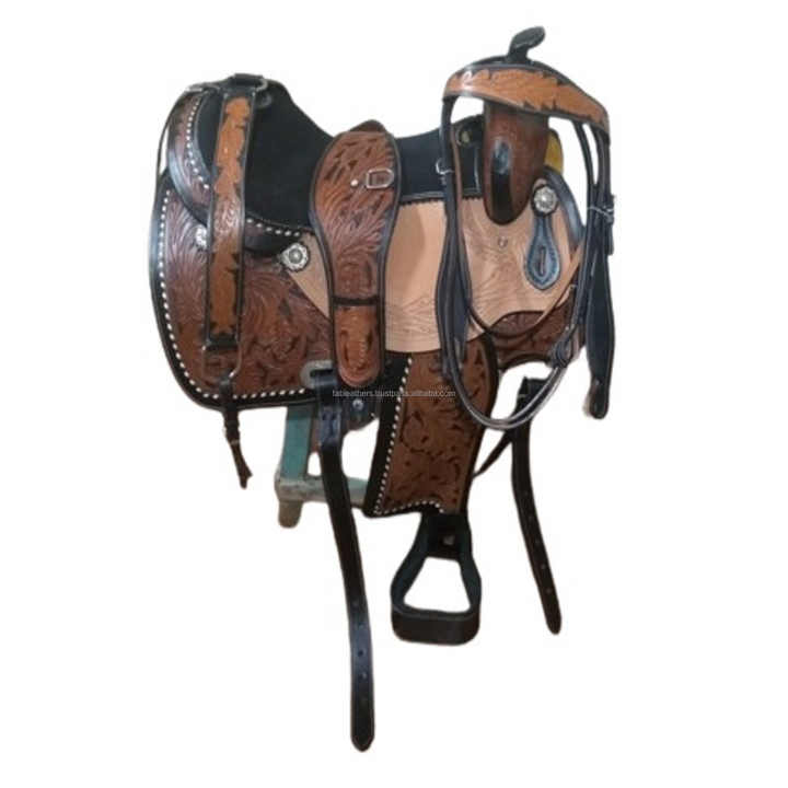 หนังแท้ทำมือ สไตล์ตะวันตก สำหรับขี่ม้าทางเทรล แกะสลักลายโบราณ