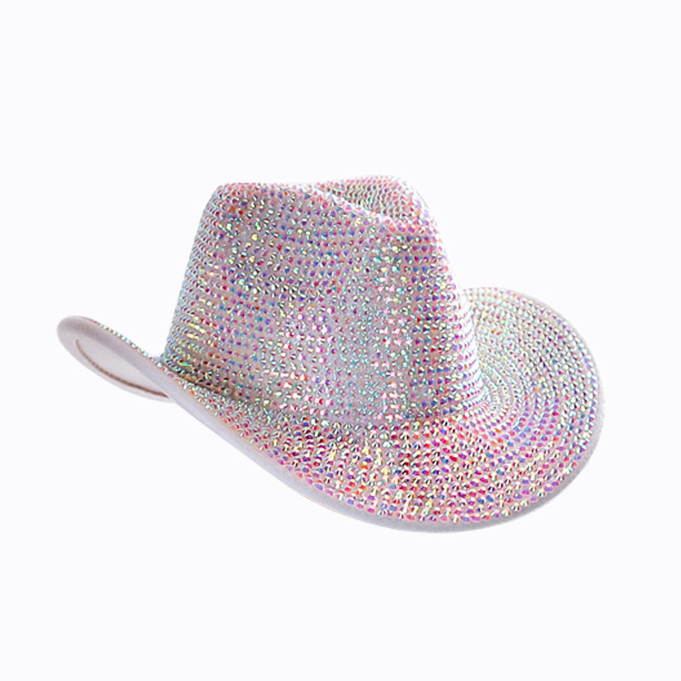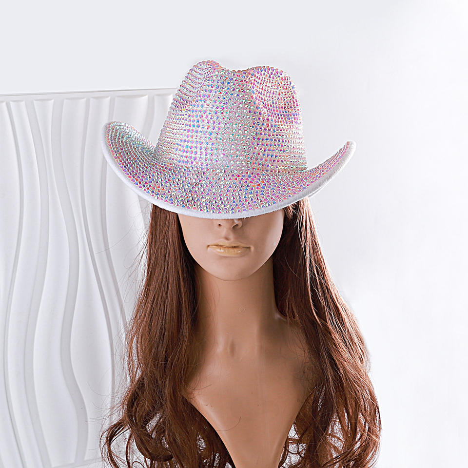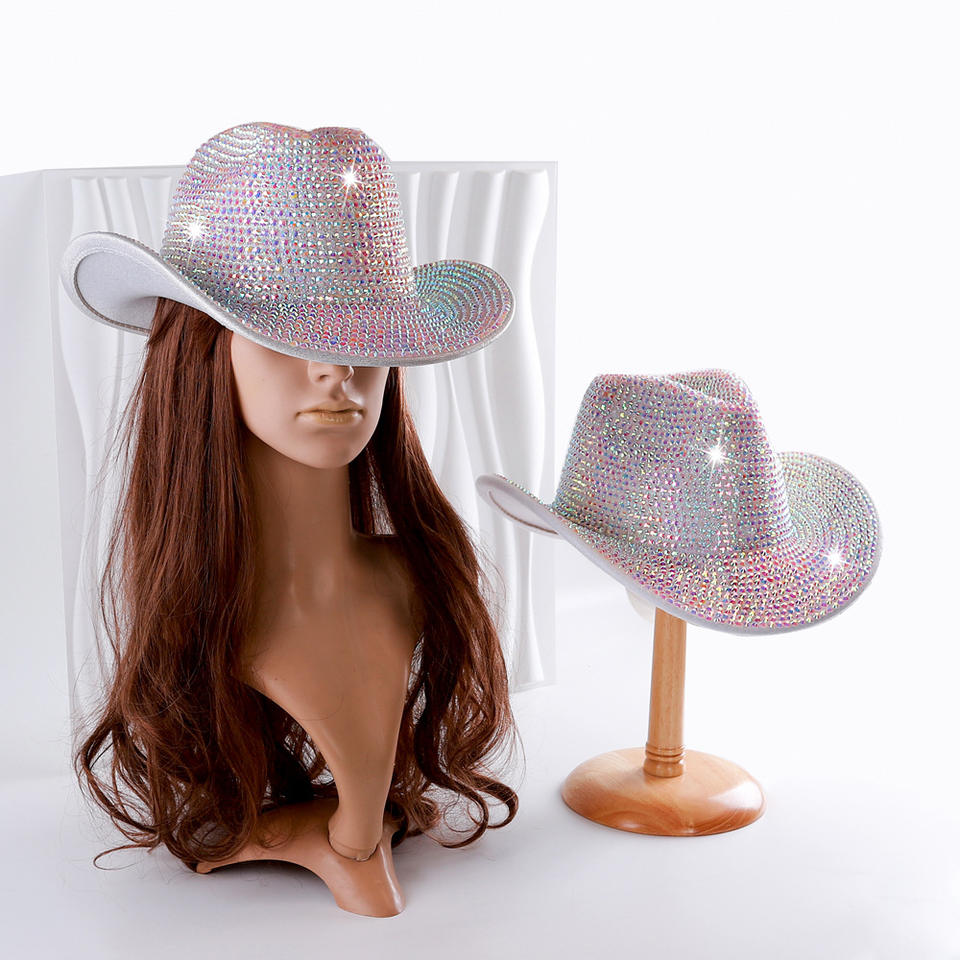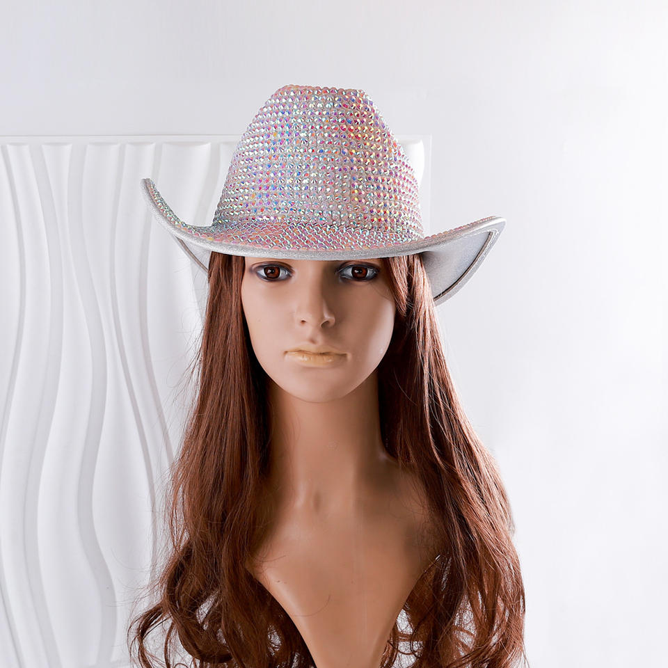 หมวกคาวบอยประดับเพชร AB สีสันสดใส หมวกทรงสูงทำจากผ้าสักหลาด สำหรับการแสดงบนเวที