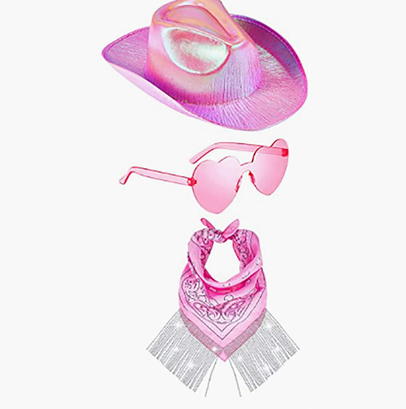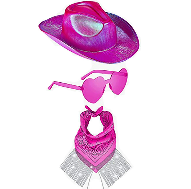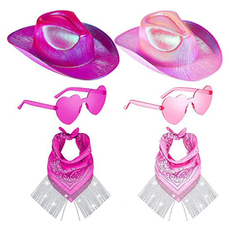 ชุดหมวกคาวบอยและแว่นกันแดดหัวใจสำหรับเด็กผู้หญิงชุดดิสโก้ปาร์ตี้หมวกคาวบอยสำหรับงานเลี้ยงวันเกิด