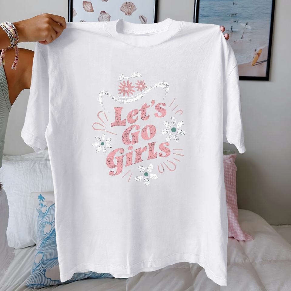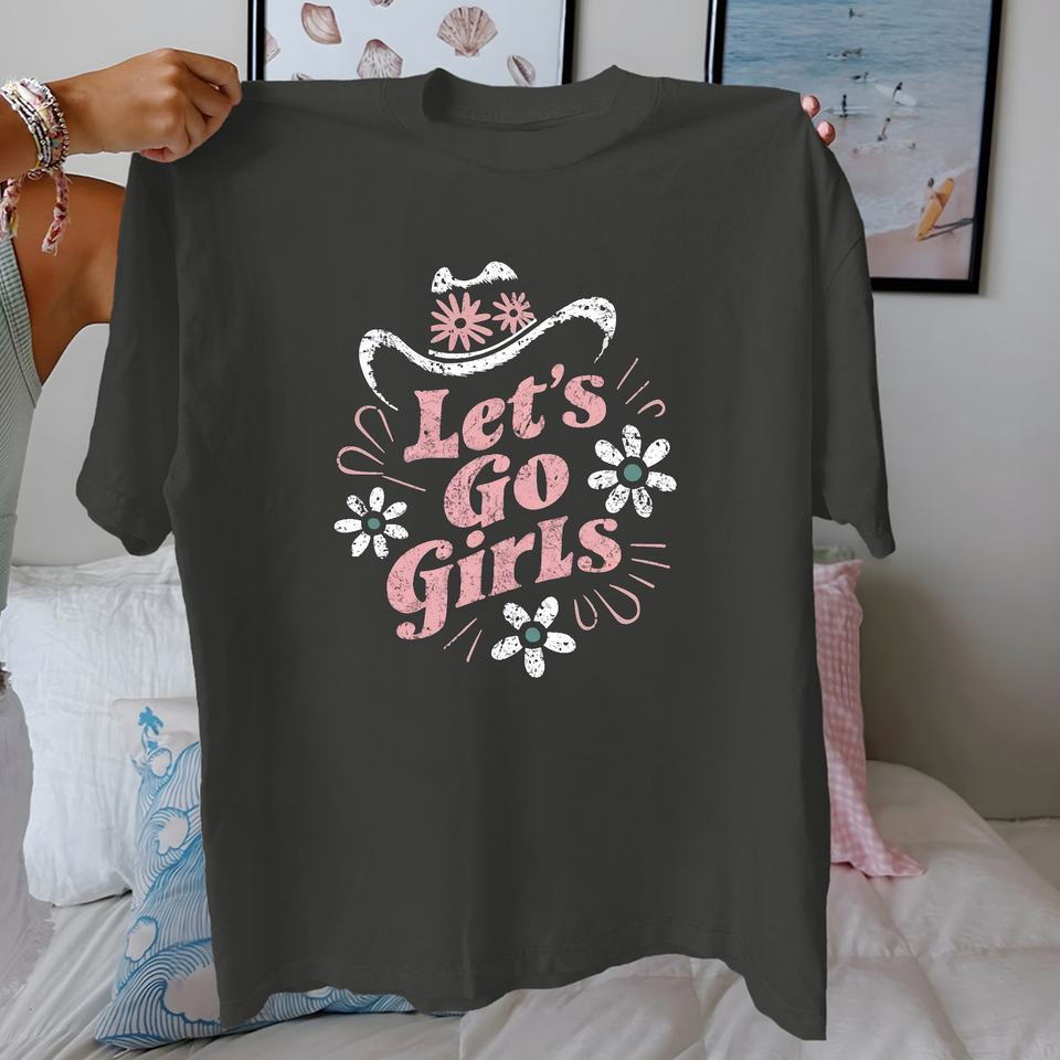 เสื้อยืดผู้หญิงผ้าฝ้ายแท้ลายดอกไม้คาวบอยสวมใส่สบายสำหรับเด็กผู้หญิง
