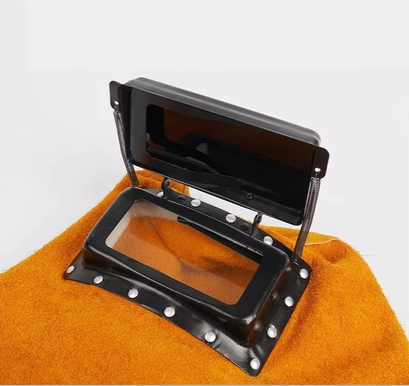 หมวกเชื่อมไฟฟ้า cowhide เชื่อมอาร์กอนหมวกป้องกันลดแสงอัตโนมัติสีน้ำตาลและสีเหลือง
