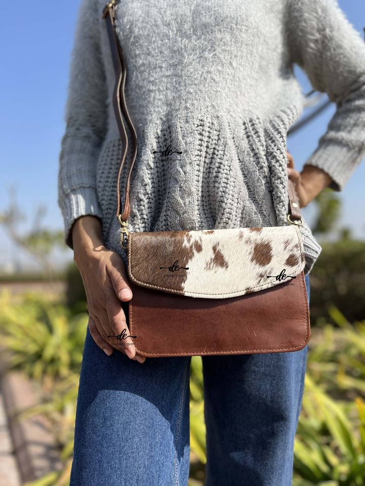 Cowhideขนสัตว์ของแท้หนังCrossbodyสลิงกระเป๋าหนังแฮนด์เมดผมบนหนังซ่อนขนสัตว์หลายใช้กระเป๋าHadnbag