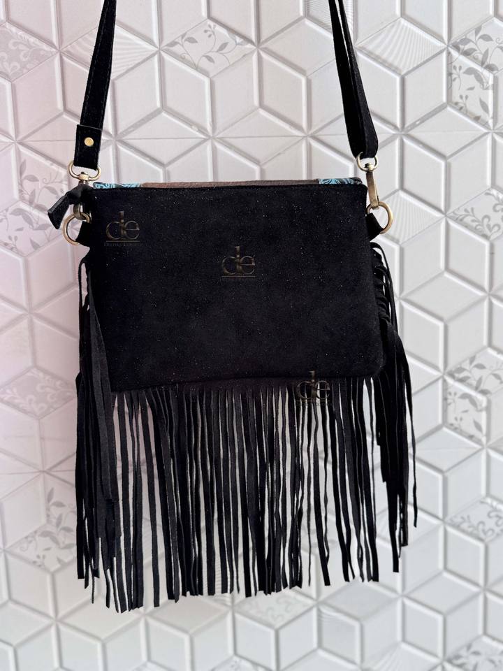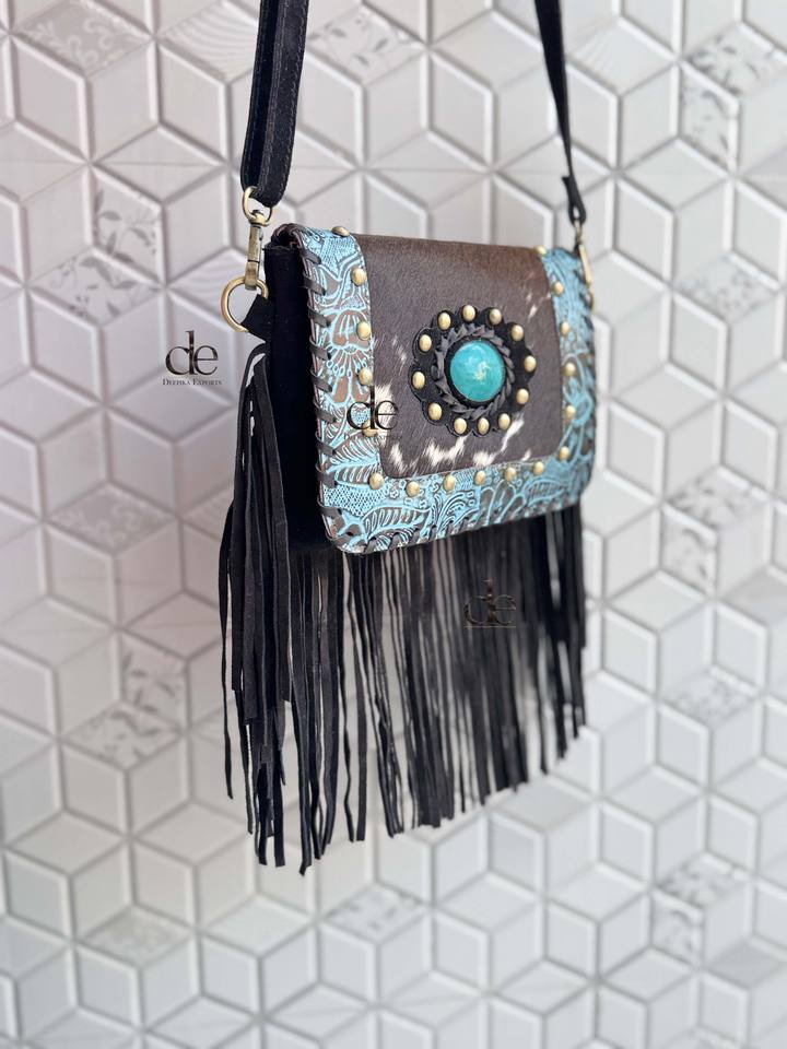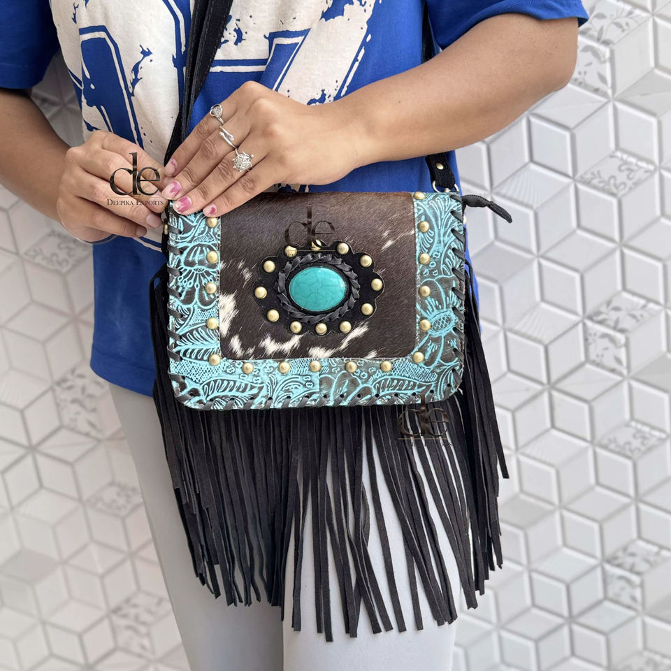 กระเป๋าหนังวัวมีพู่ห้อยทำด้วยมือสไตล์ตะวันตกแนววินเทจแนวยิปซีแนววินเทจ
