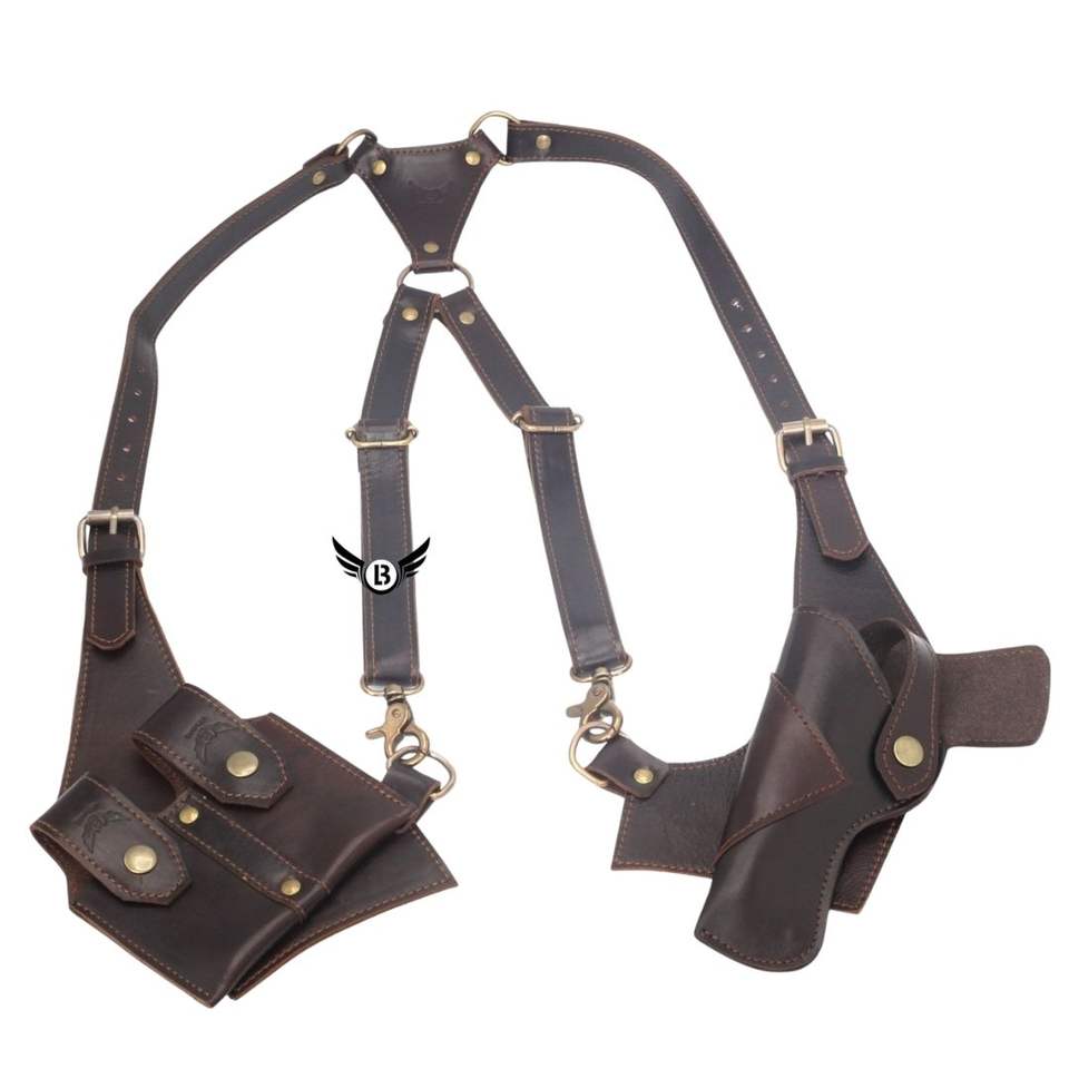 เข็มขัดหนังวัวแบบปรับได้สำหรับใส่กระสุนพร้อมหัวเข็มขัดที่ปลอดภัยและห่วงใส่กระสุน