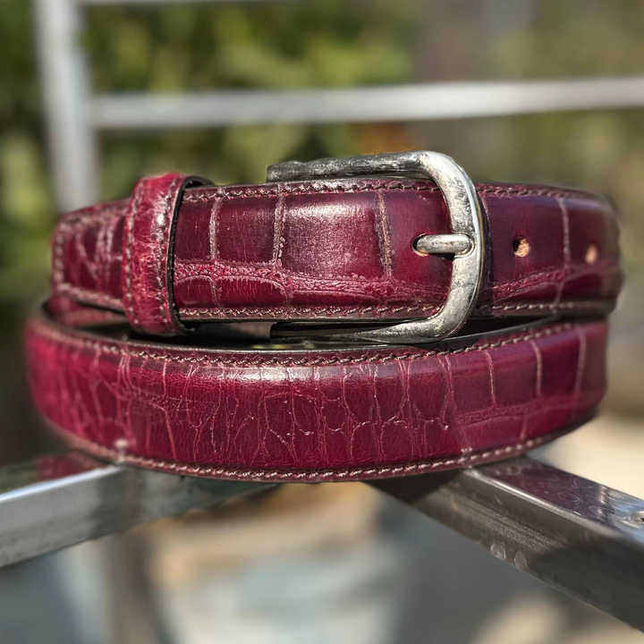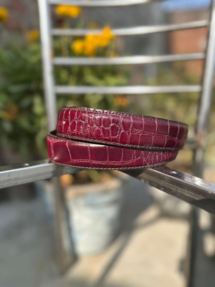 เข็มขัดหนังวัวปักลายจระเข้สีน้ำตาล หัวเข็มขัดแบบเหล็ก ความกว้าง 3.5 ซม. ปรับแต่งได้สำหรับใส่ในโอกาสทางการและลำลอง