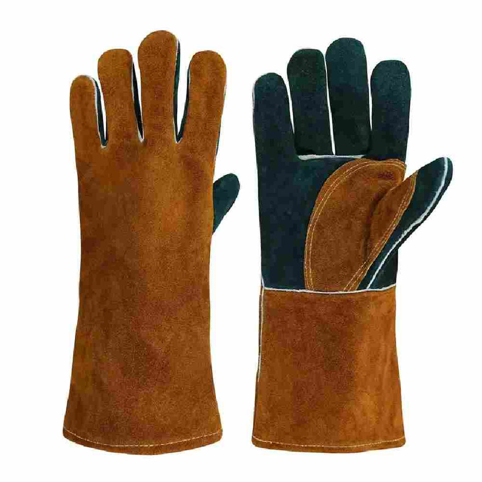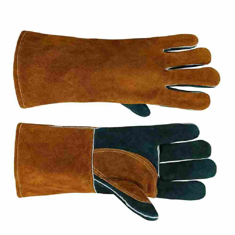 ถุงมืองานเชื่อมหนังวัวแบบเต็มนิ้วถุงมือนิรภัยสำหรับมือจับป้องกันระบายอากาศได้ดีดีไซน์เป็นเอกลักษณ์