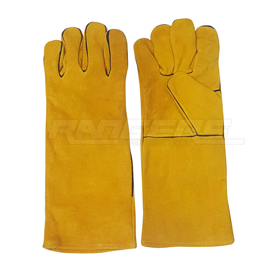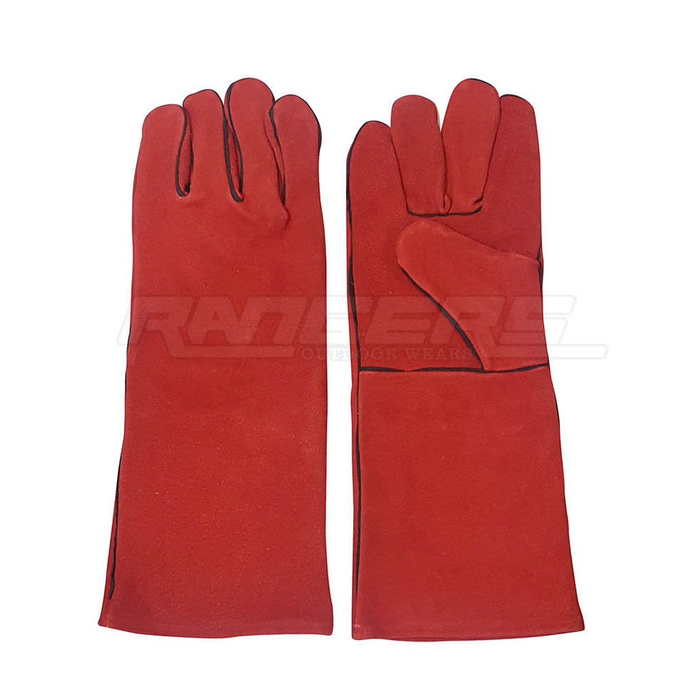 ถุงมือหนังวัวทนความร้อนกันไฟถุงมือนิรภัยสำหรับงานเชื่อมขนสัตว์เลี้ยงจำนวนมาก