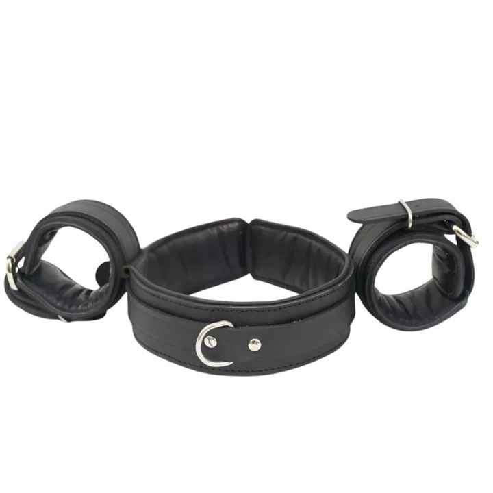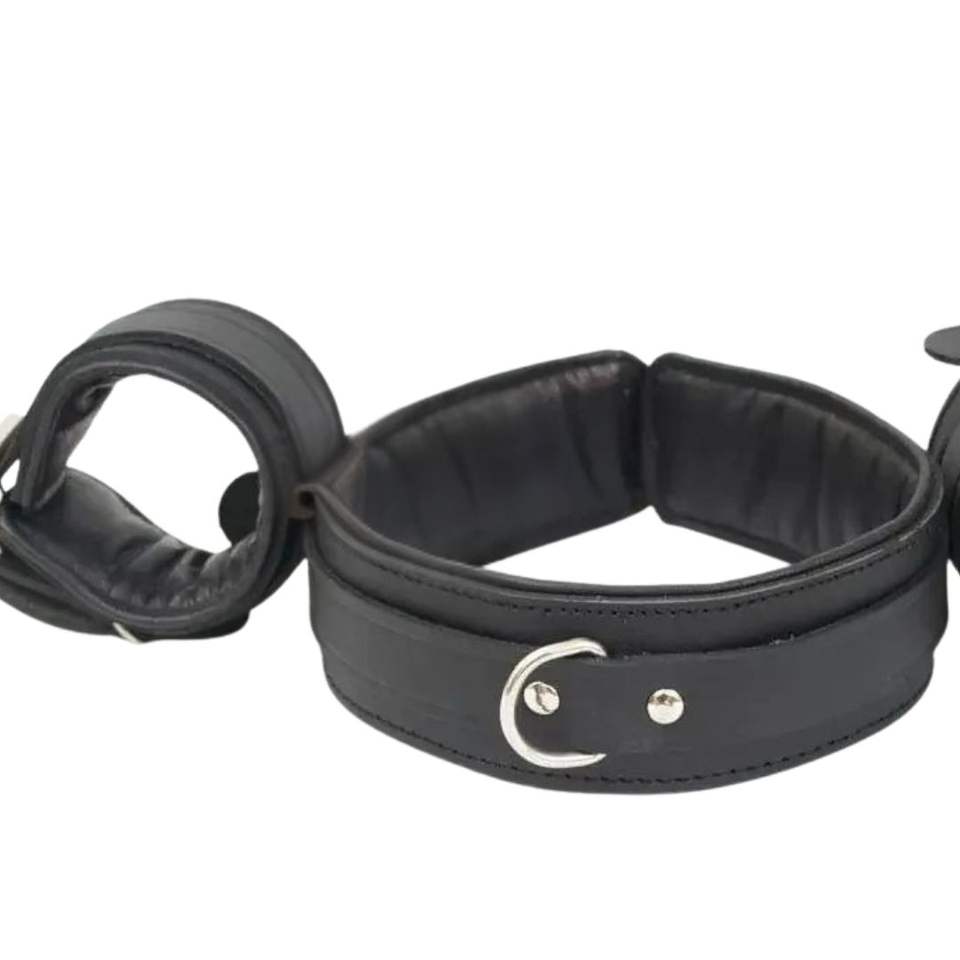 Cowhide Leather Restraint Harness with Wrist and Collar Attachments