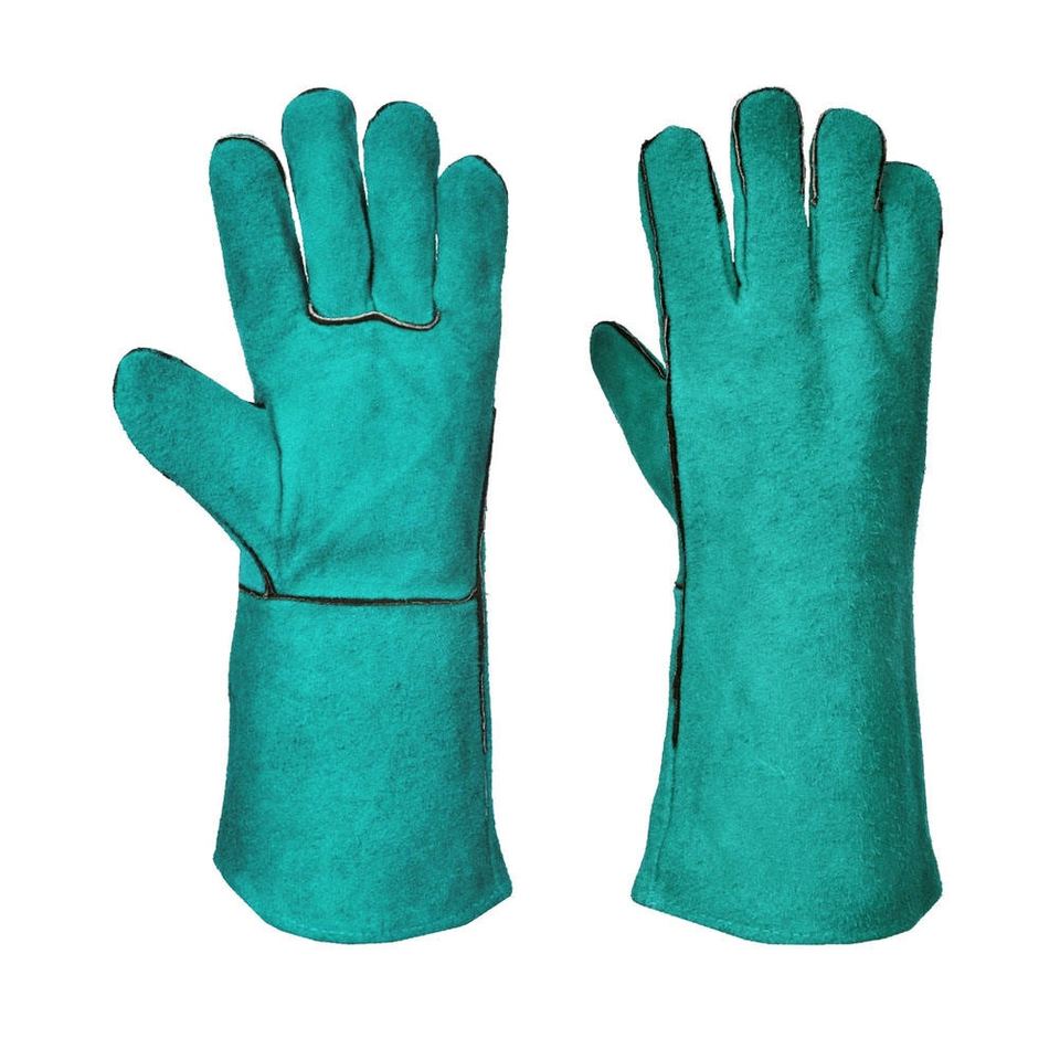 ถุงมือหนังวัวแท้สำหรับงานเชื่อม ได้รับมาตรฐาน CE ทนทาน ป้องกันการเสียดสี พร้อมปลอกแขนนิรภัย