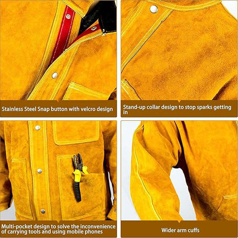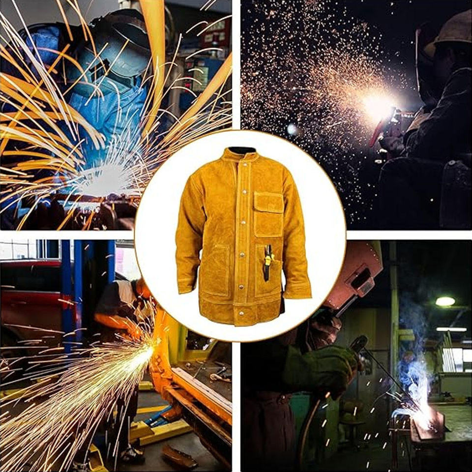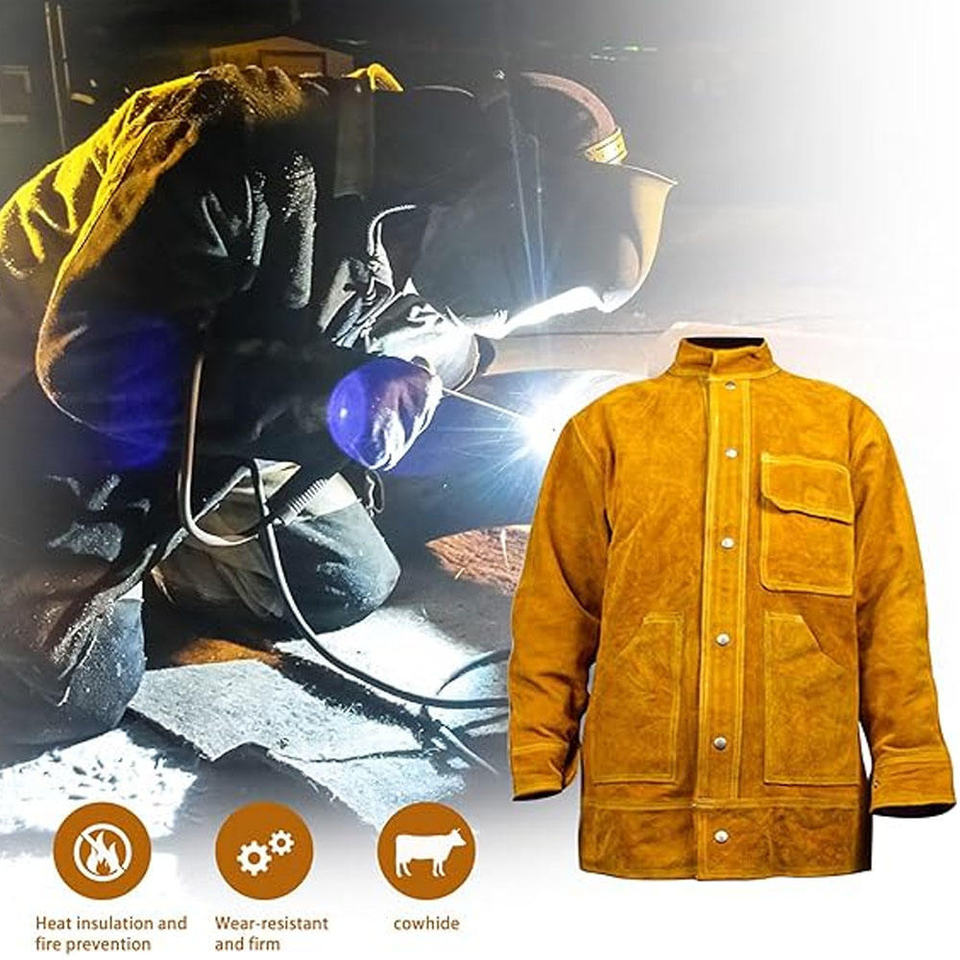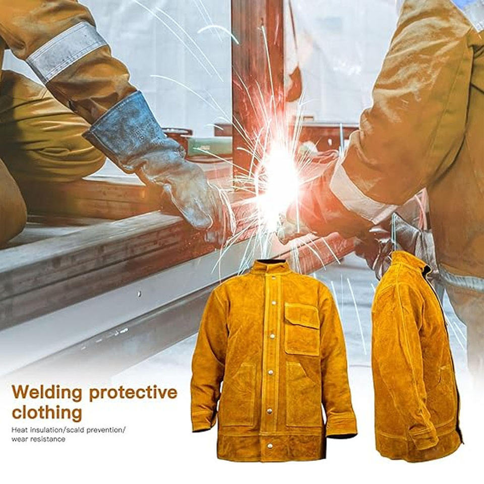 เสื้อแจ็คเก็ตหนังวัวสำหรับงานเชื่อม ทนทาน ป้องกันเปลวไฟ เหมาะสำหรับงานหนัก สำหรับทุกเพศ